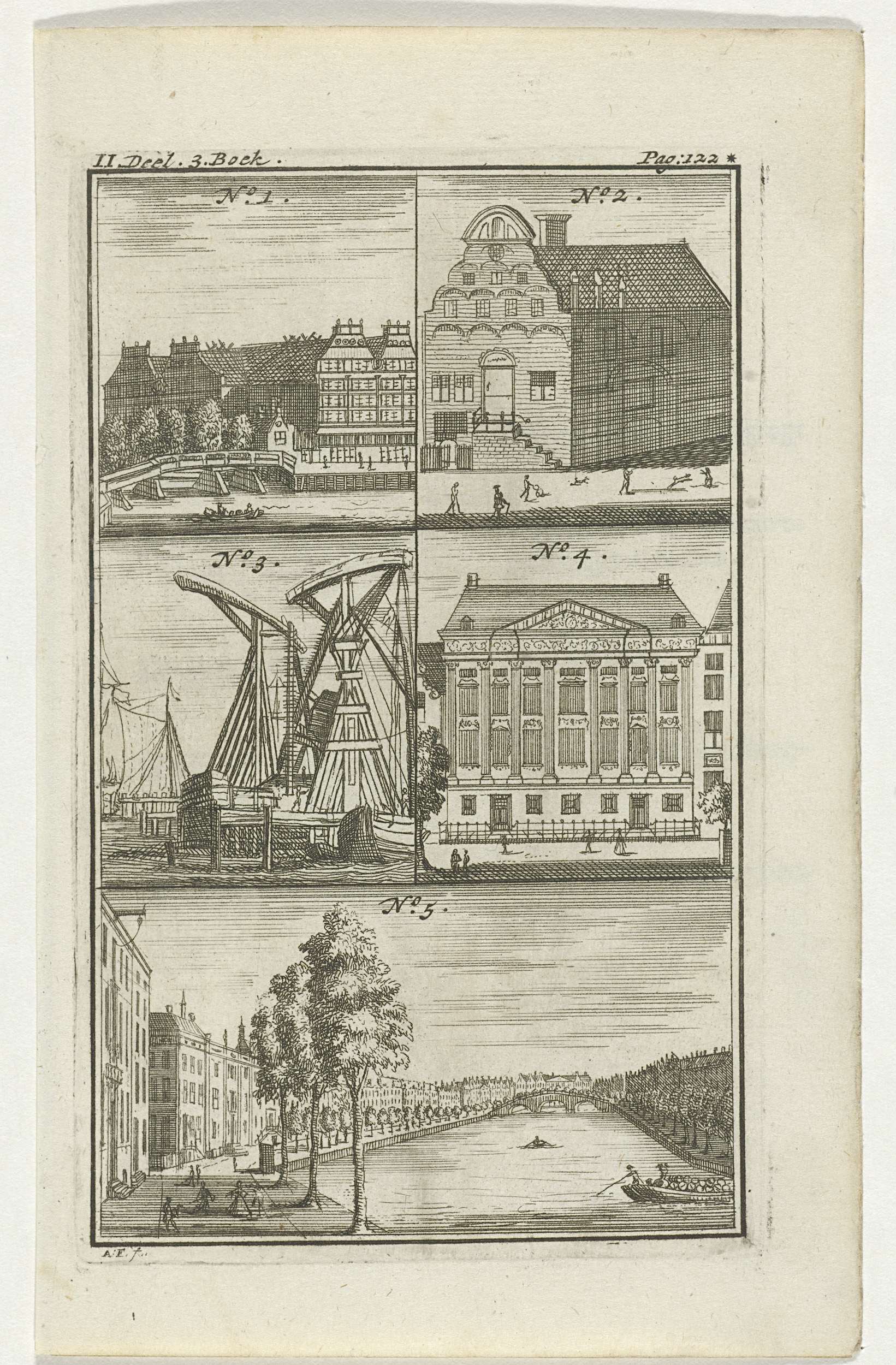 Tekstblad bij boekillustratie met weergave van gebouwen en gezichten te Amsterdam