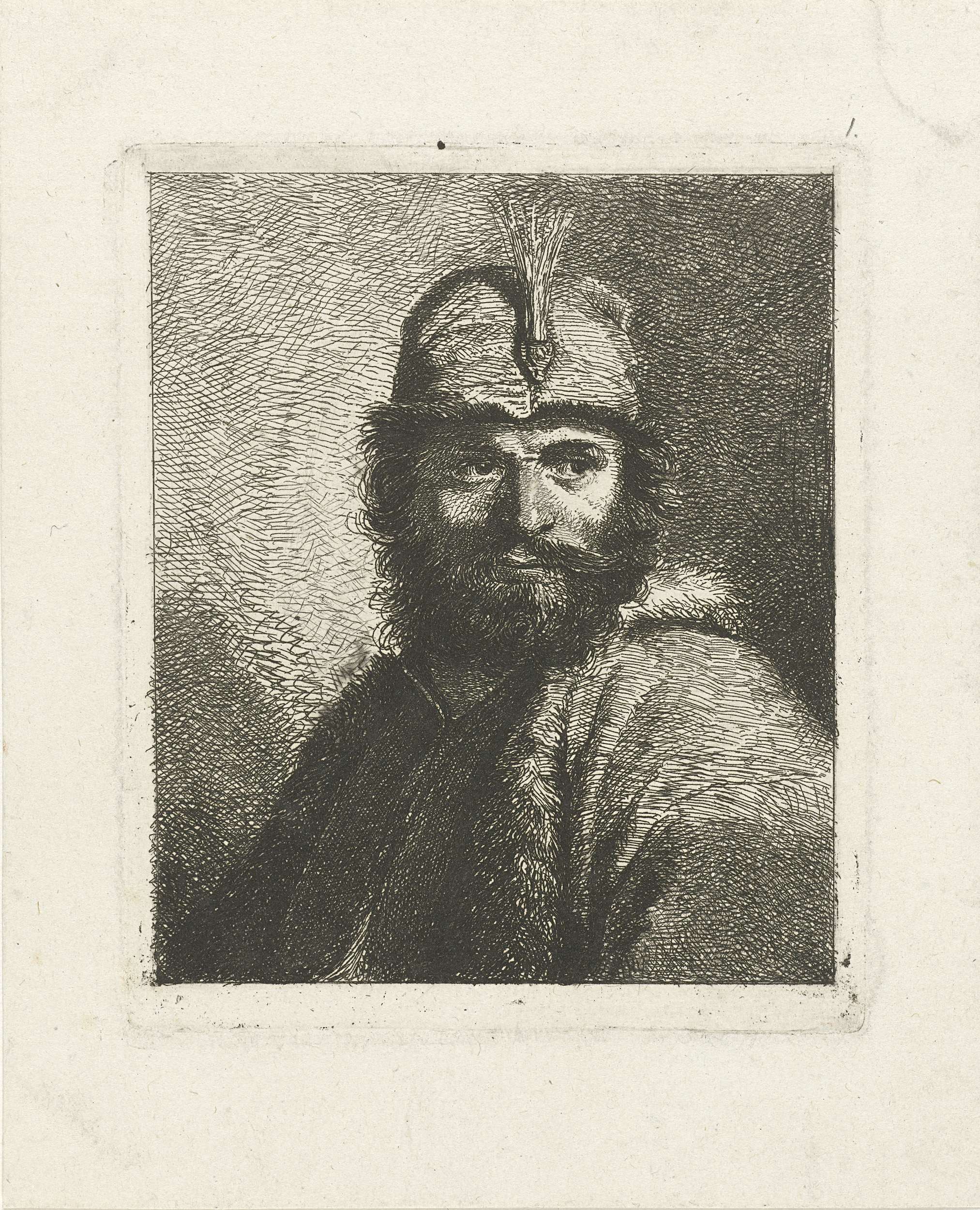 Portret van onbekende man met baard en gepluimde hoed