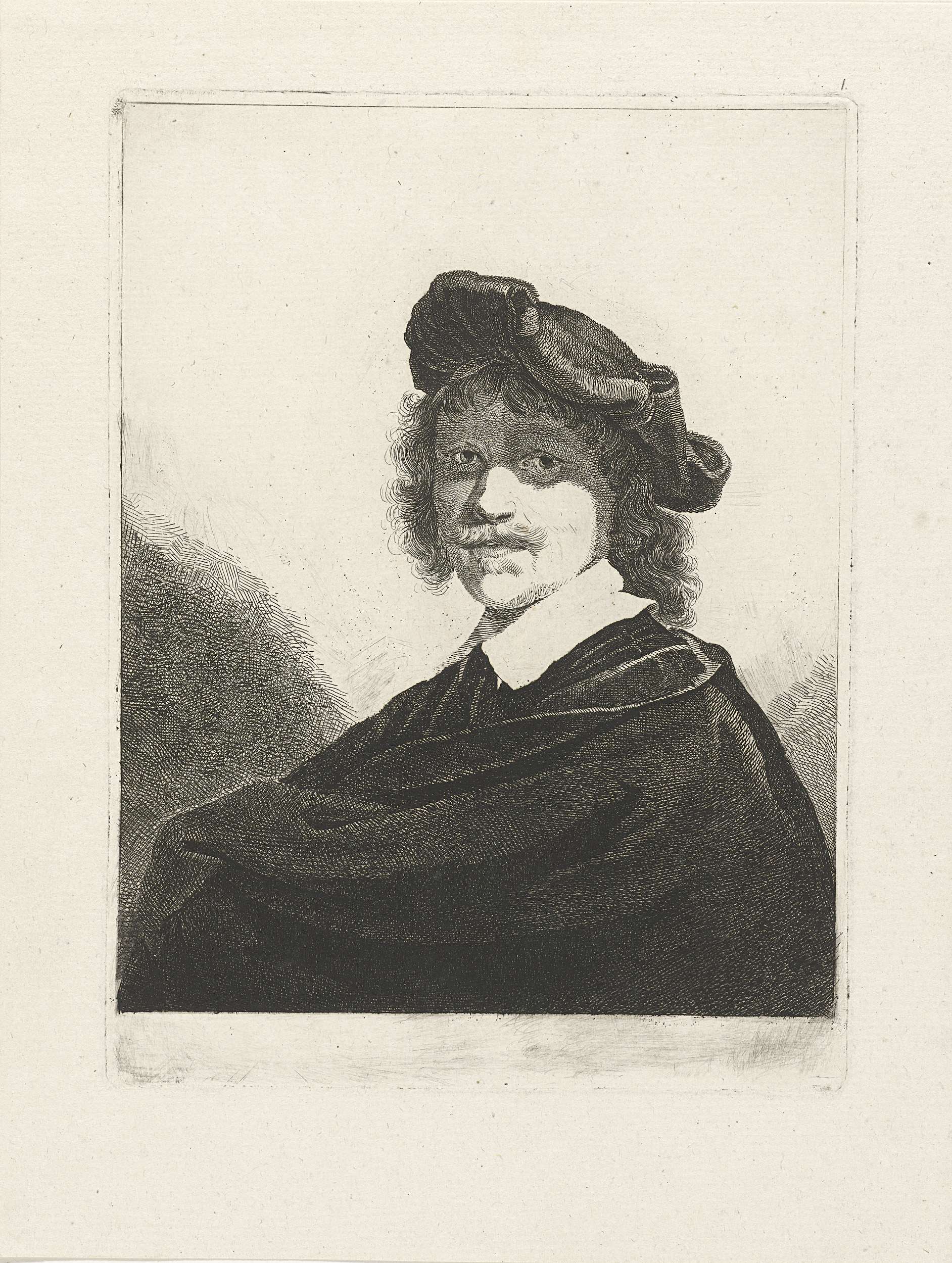 Portret van de schilder Gerard Dou, ten halven lijve naar links. Zijn hoofd is getooid met een baret.