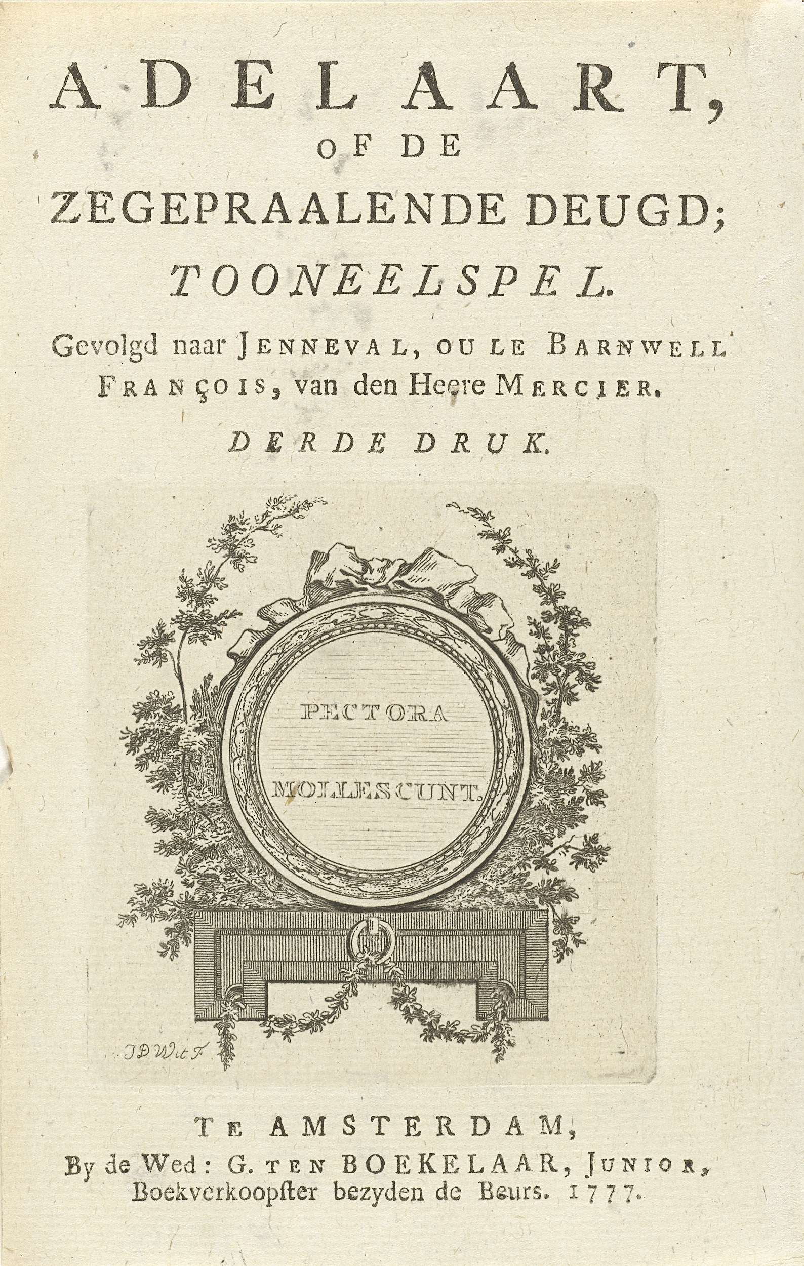 Titelpagina voor: Adelaart, of de zegepraalende deugd; toneelspel, 1777
