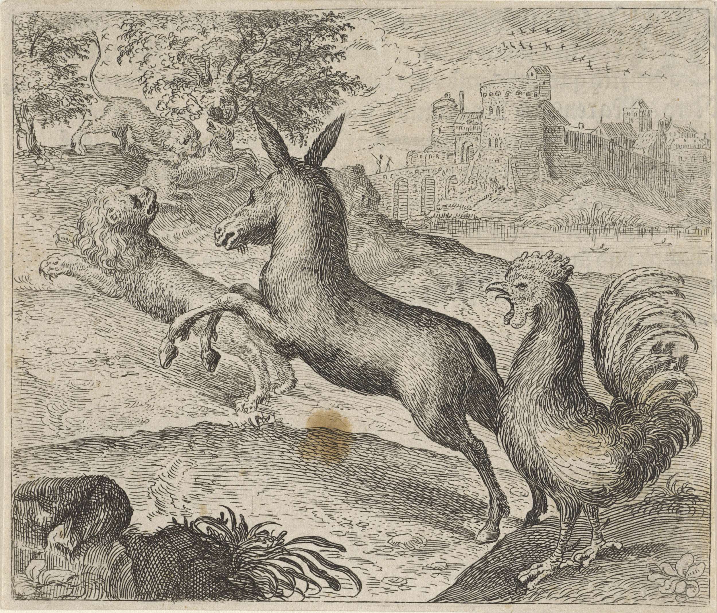 Fabel van de leeuw, ezel en haan