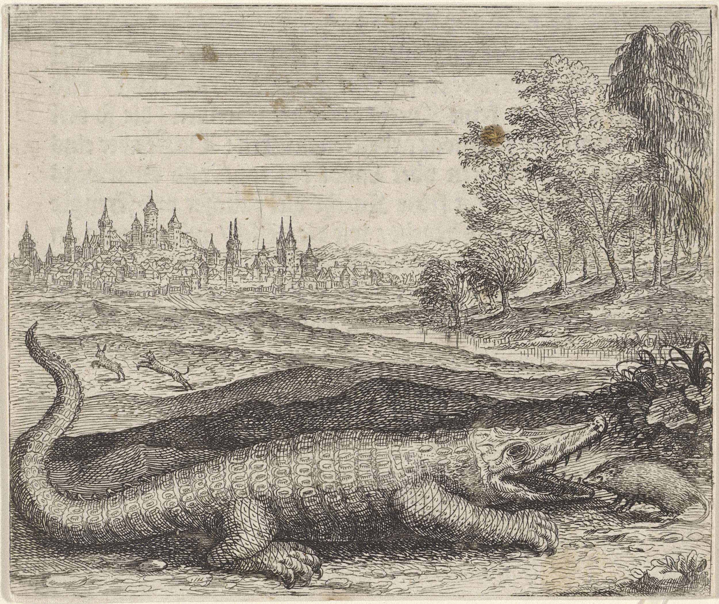 Een krokodil heeft zijn bek open en laat zijn tanden schoonmaken door een mangoest. De moraal van het verhaal leert dat je roofdieren niet mag vertrouwen.