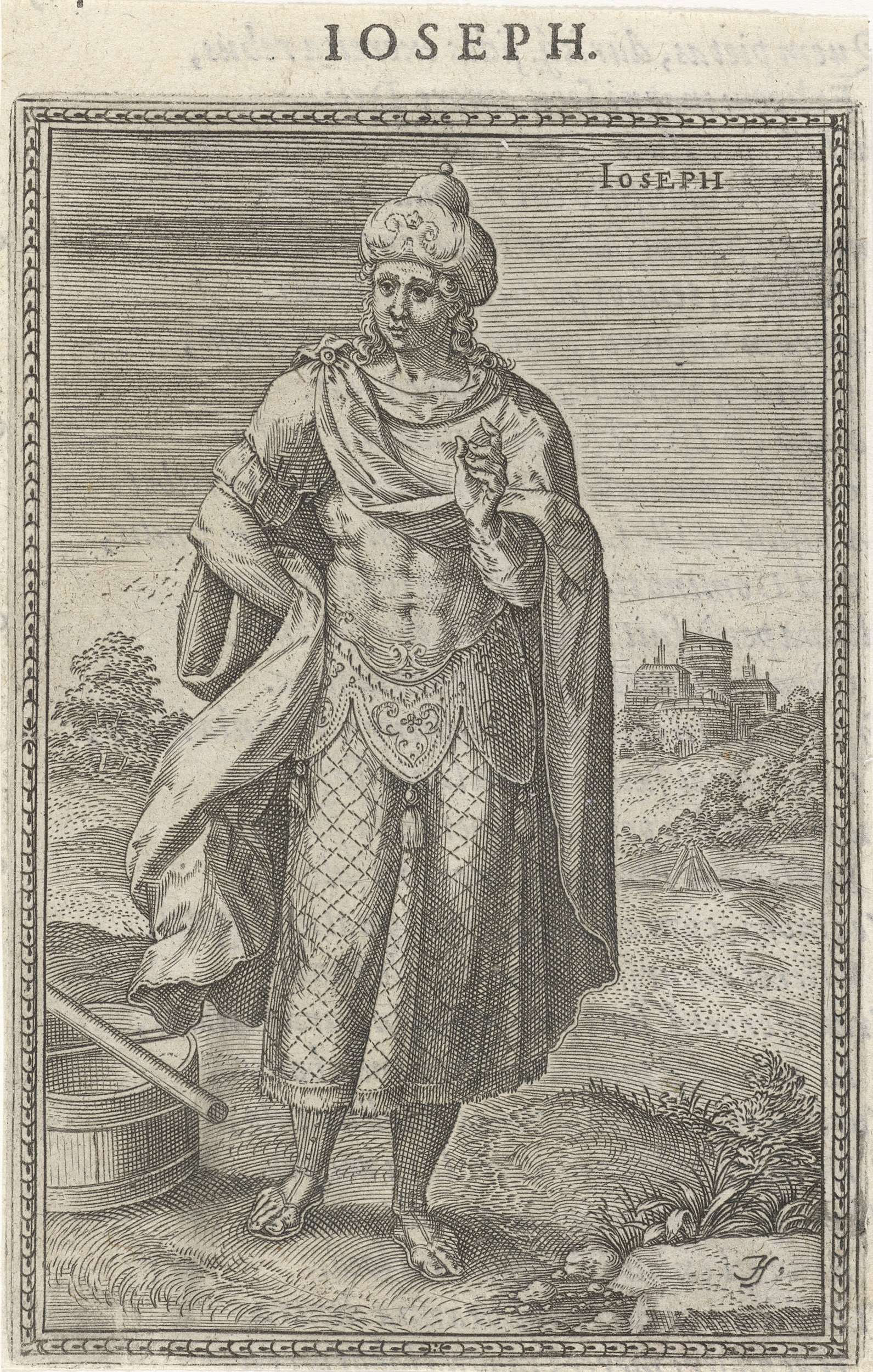 Jozef, de zoon van Jakob, in een landschap. Hij is gekleed als grootvizier van Egypte.