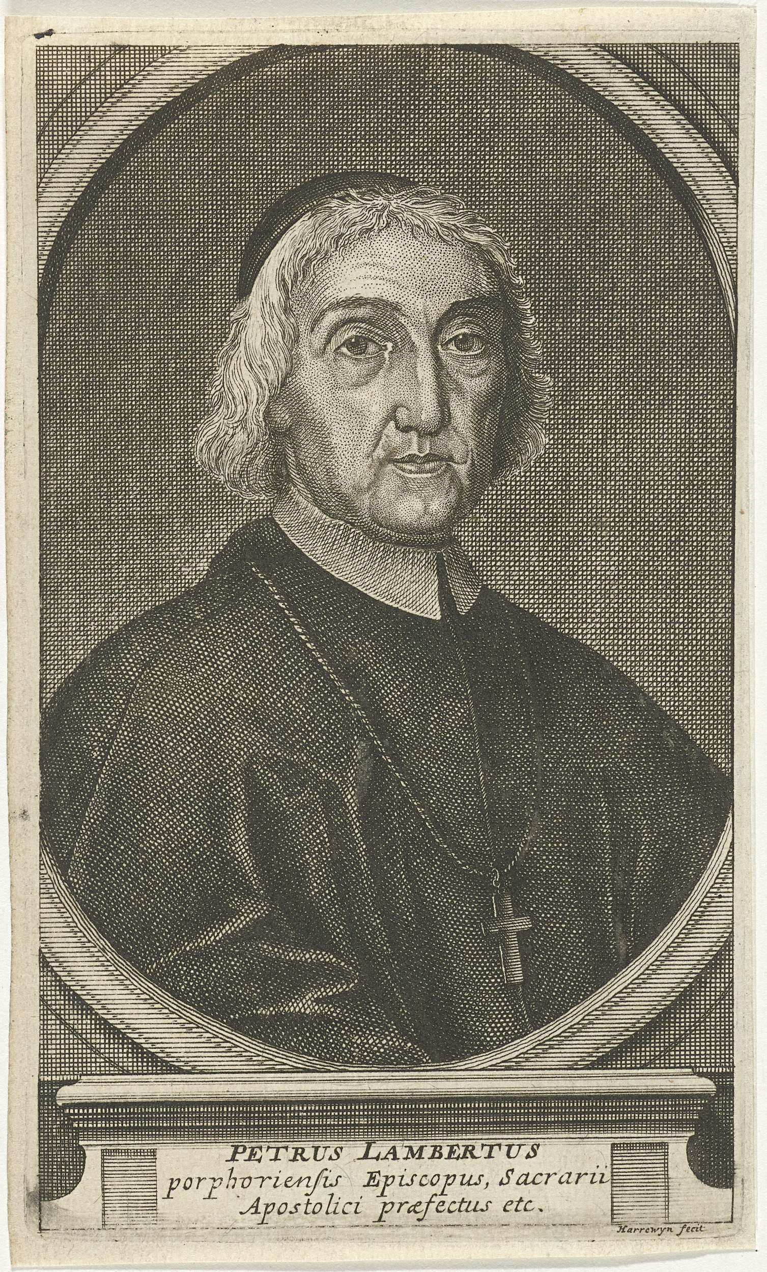 Buste naar rechts van de geestelijke Petrus Lambertus in een ovaal.