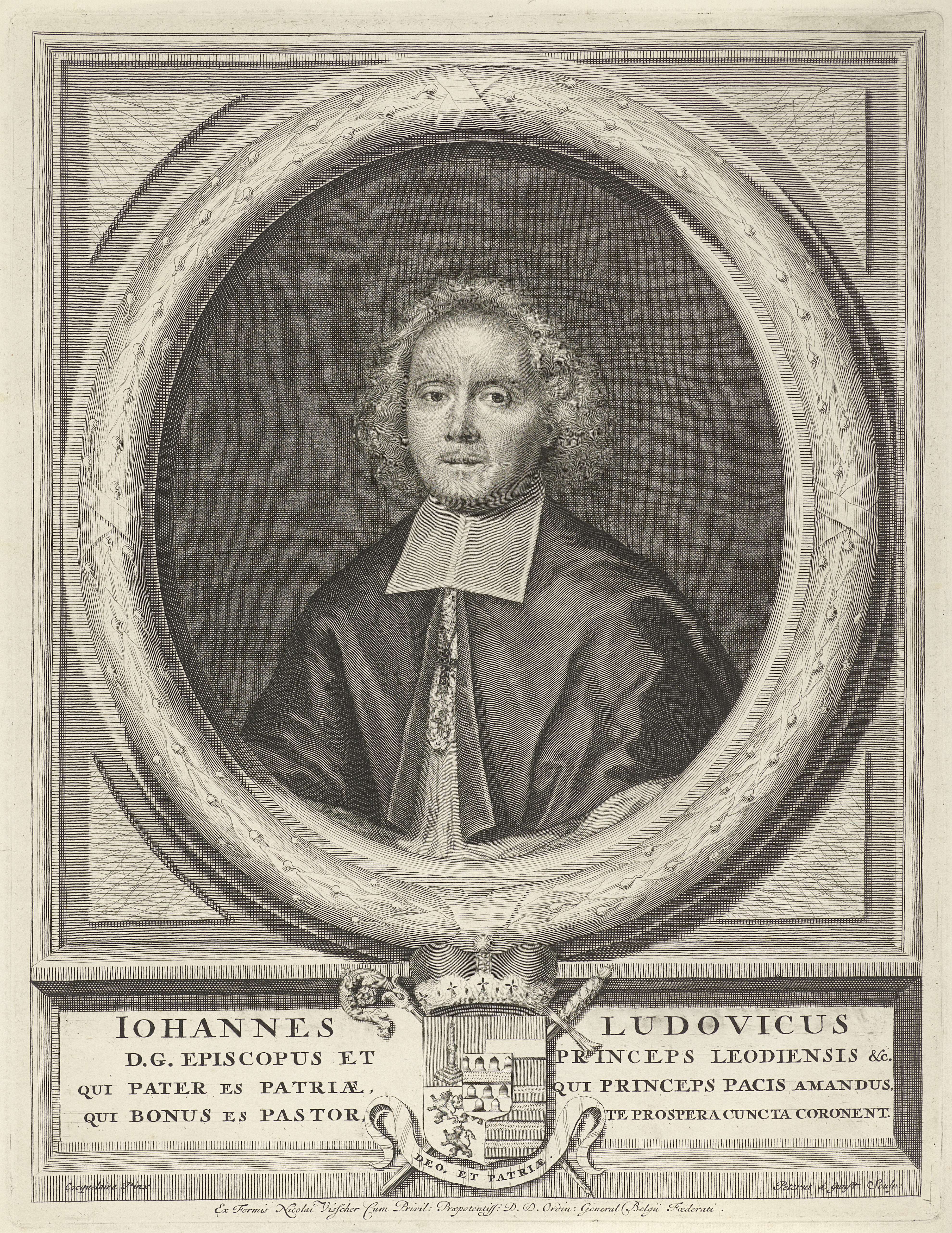 Johannes Lodewijk van Elderen, aartsbisschop van Luik. De prent heeft een Latijns onderschrift.