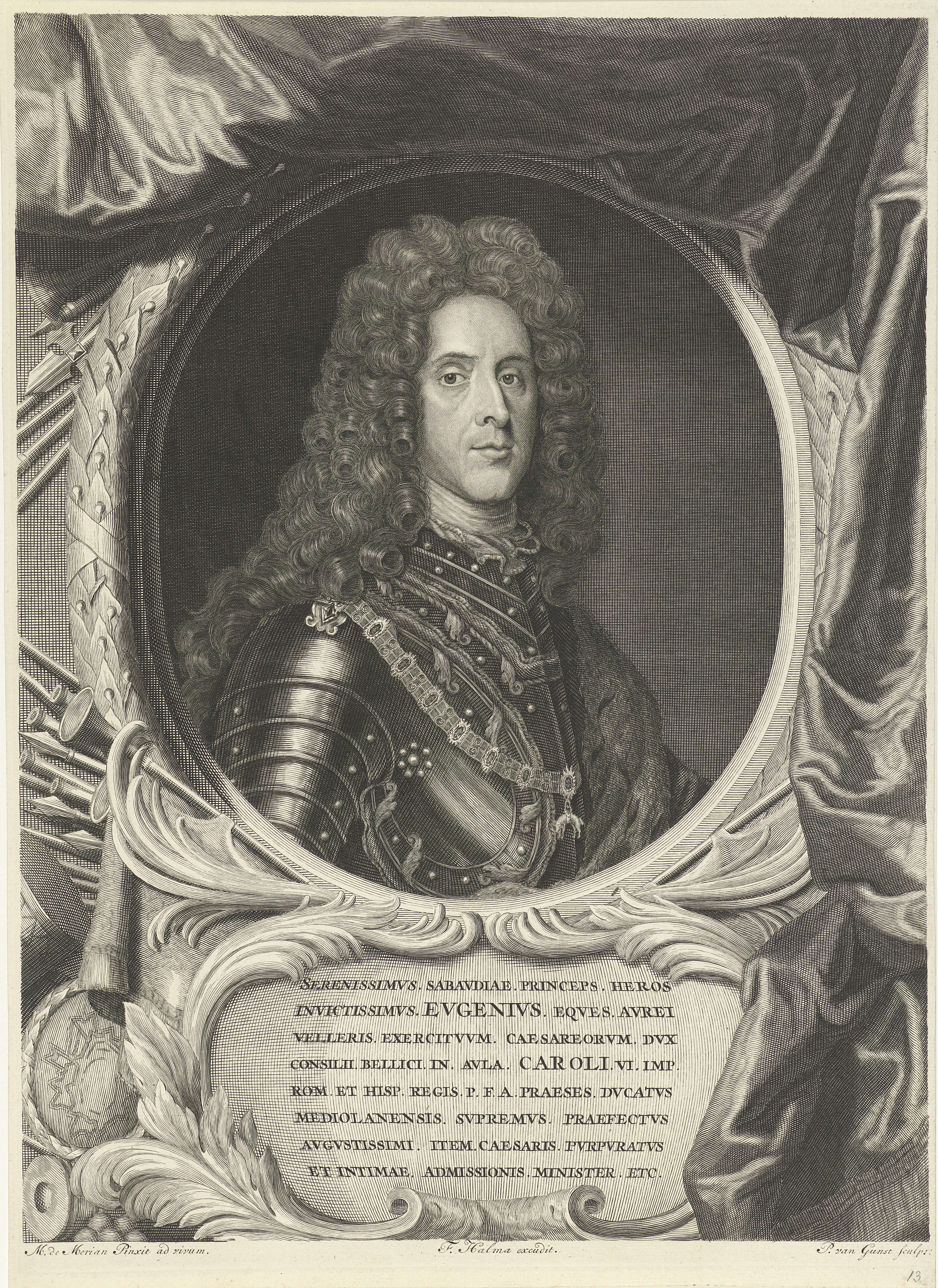 Karel VI, keizer van het Heilig Roomse Rijk en aartshertog van Oostenrijk. De prent heeft een Latijns onderschrift met gegevens over zijn leven.