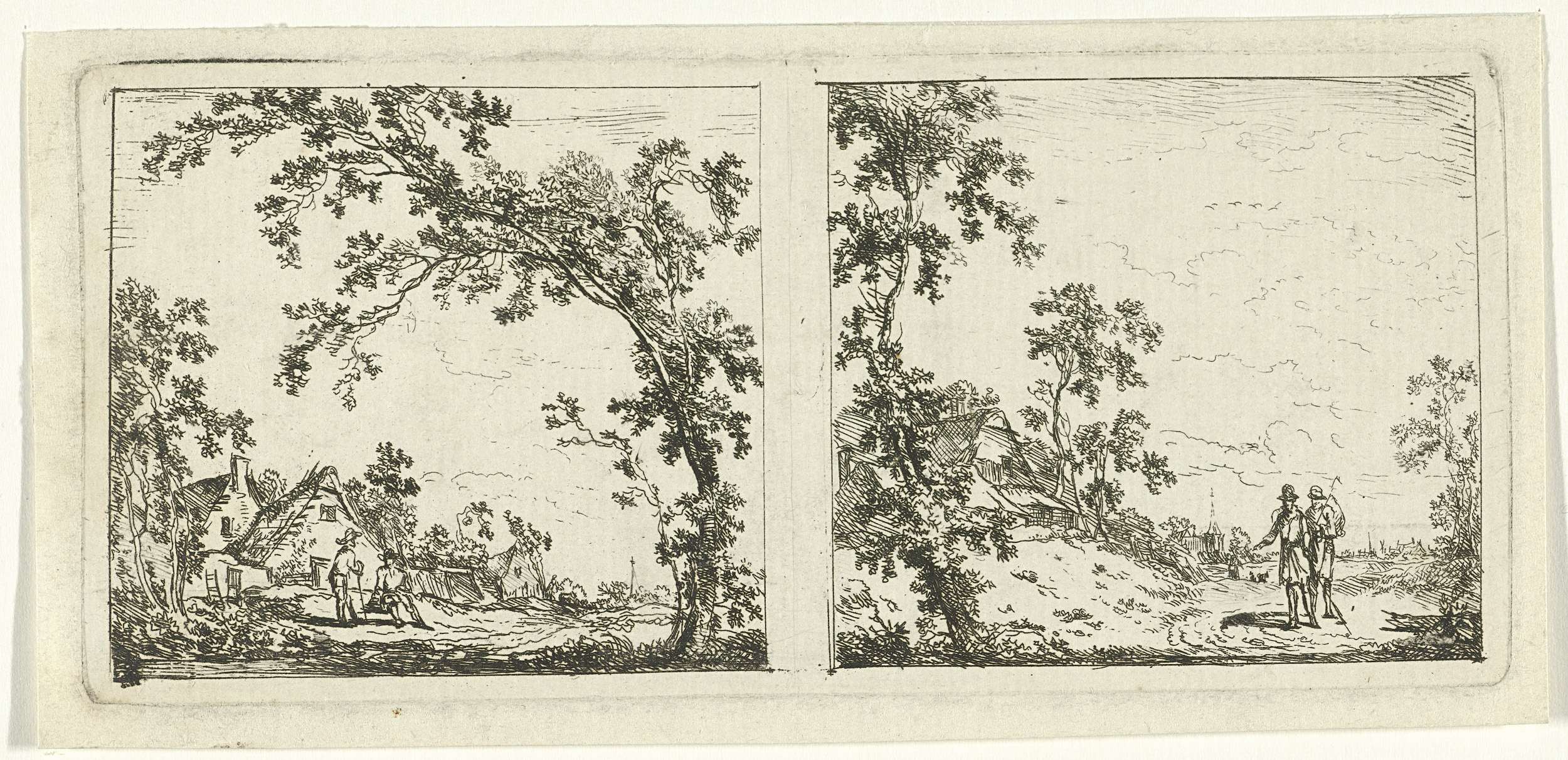 Twee landschappen met wandelaars