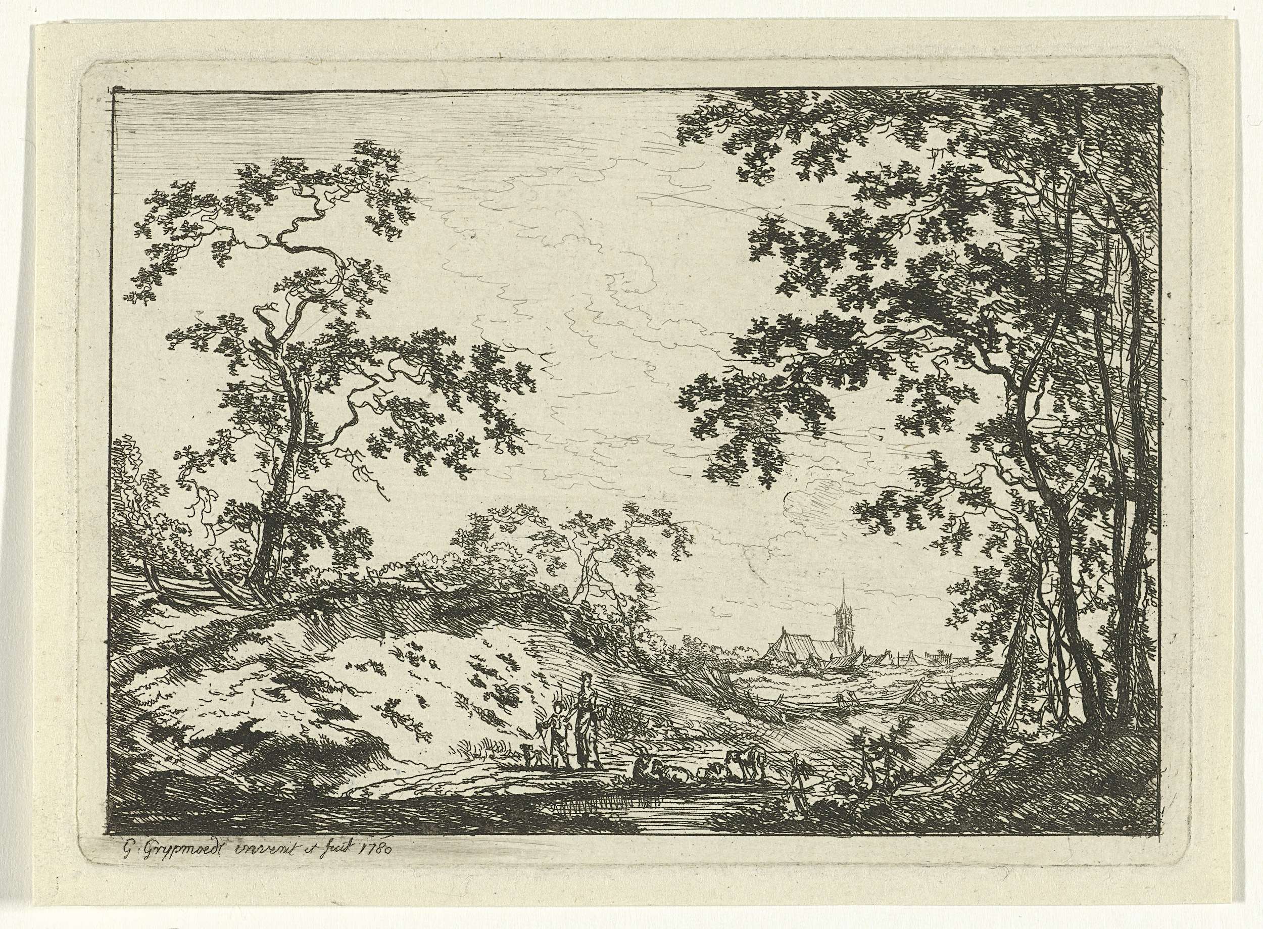 Landschap met moeder, kind en vee