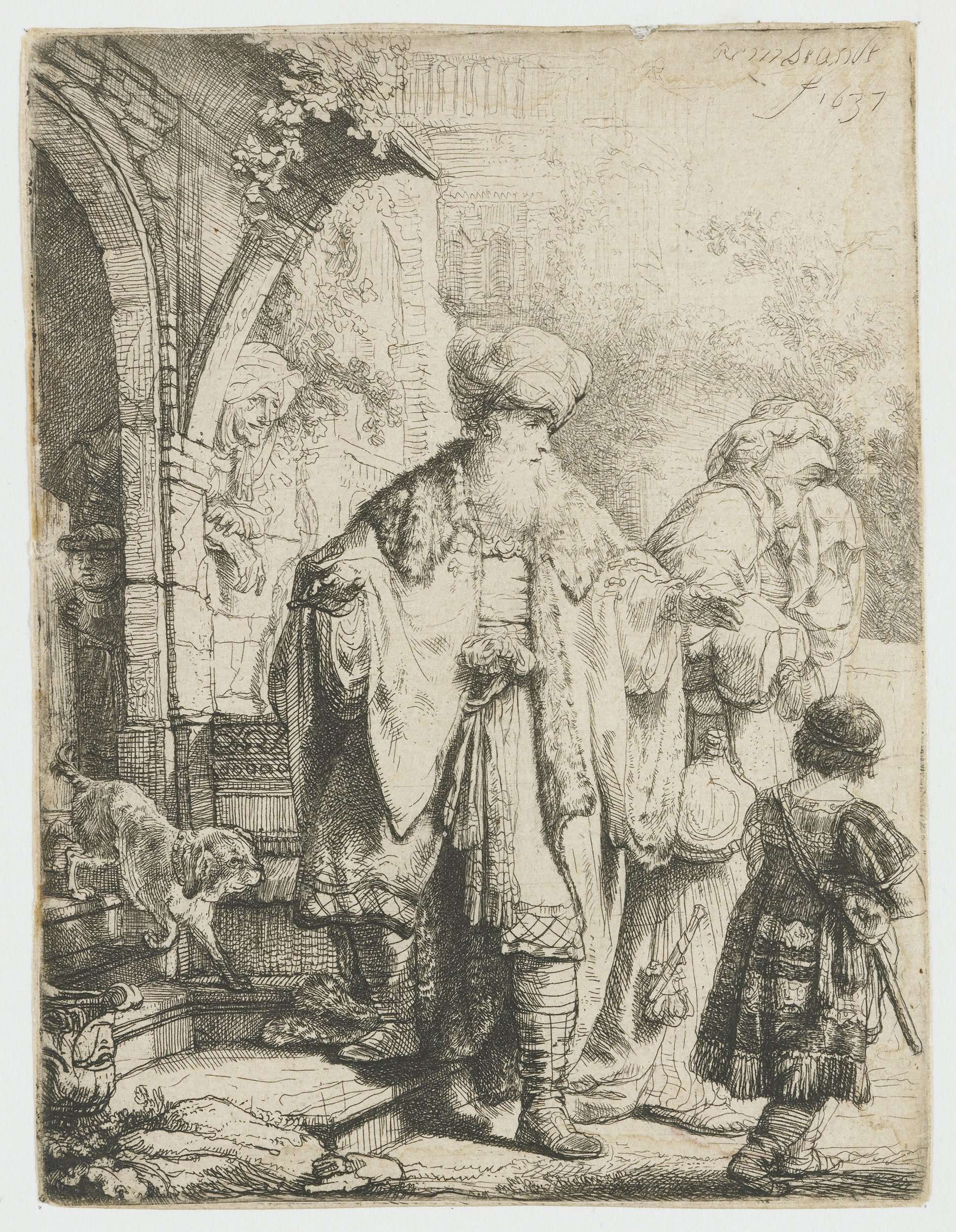 Voordat Abraham en Sara op hoge leeftijd hun kind Isaak kregen, had Abraham al een zoon bij Sara’s Egyptische bediende Hagar. Na Isaaks geboorte eiste Sara dat Abraham Hagar en haar zoon Ismael zou verstoten. Schoorvoetend gaf Abraham toe. Rembrandt zet het drama flink aan. Rechts de ontredderde Hagar die huilend wordt weggestuurd. Links hangt ...