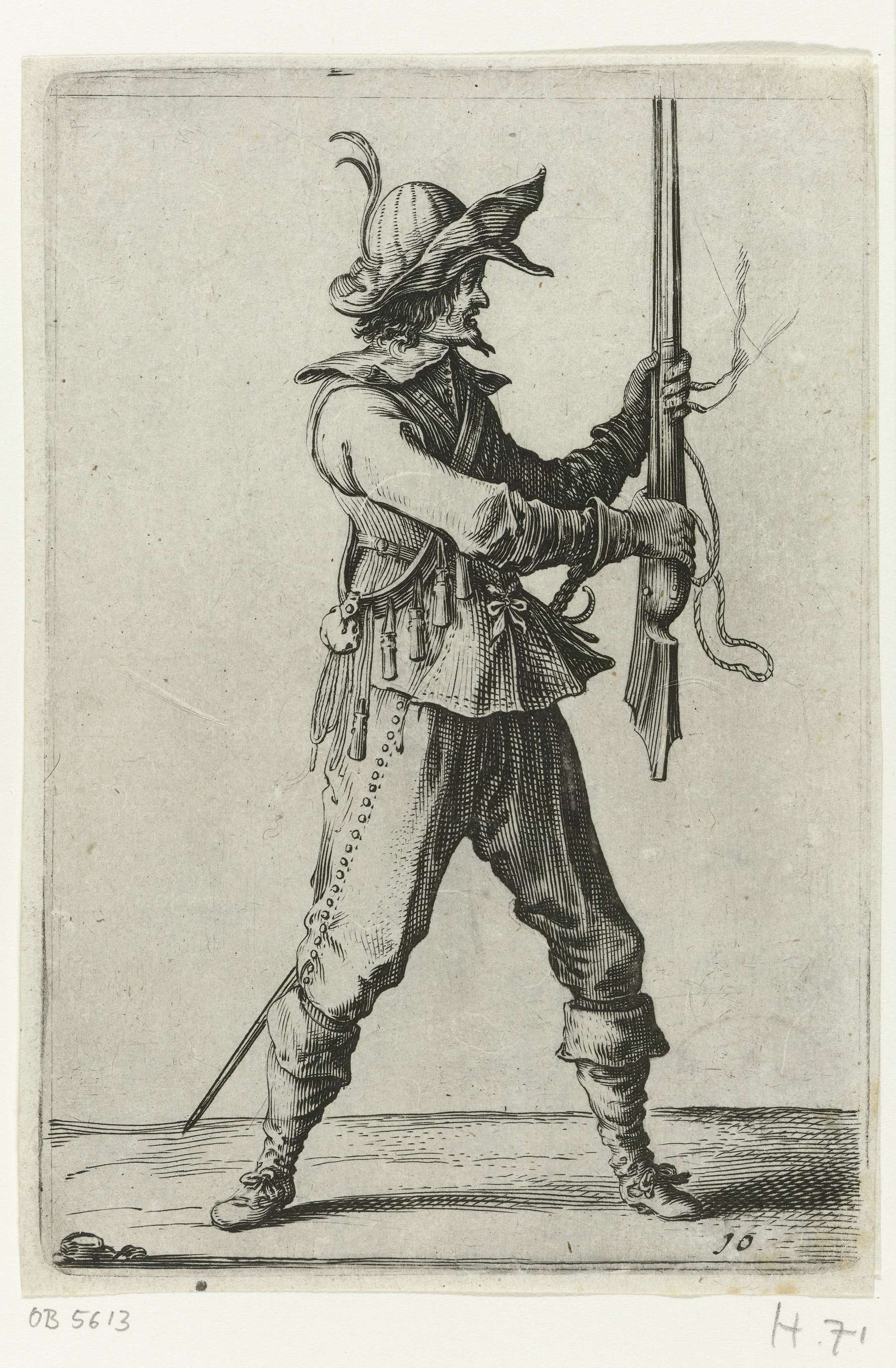 De prent maakt deel uit van een tiendelige serie met voorstellingen van gewapende officieren en soldaten, gekleed volgens de Nederlandse mode ca. 1625-1635.