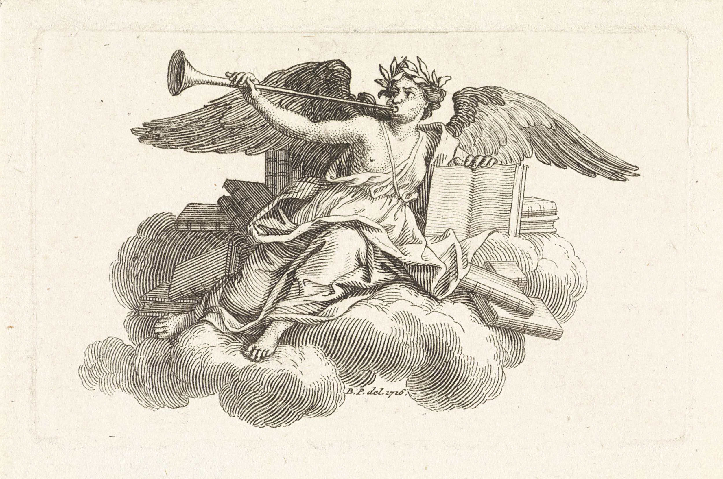 Faam toont een boek en blaast de loftrompet