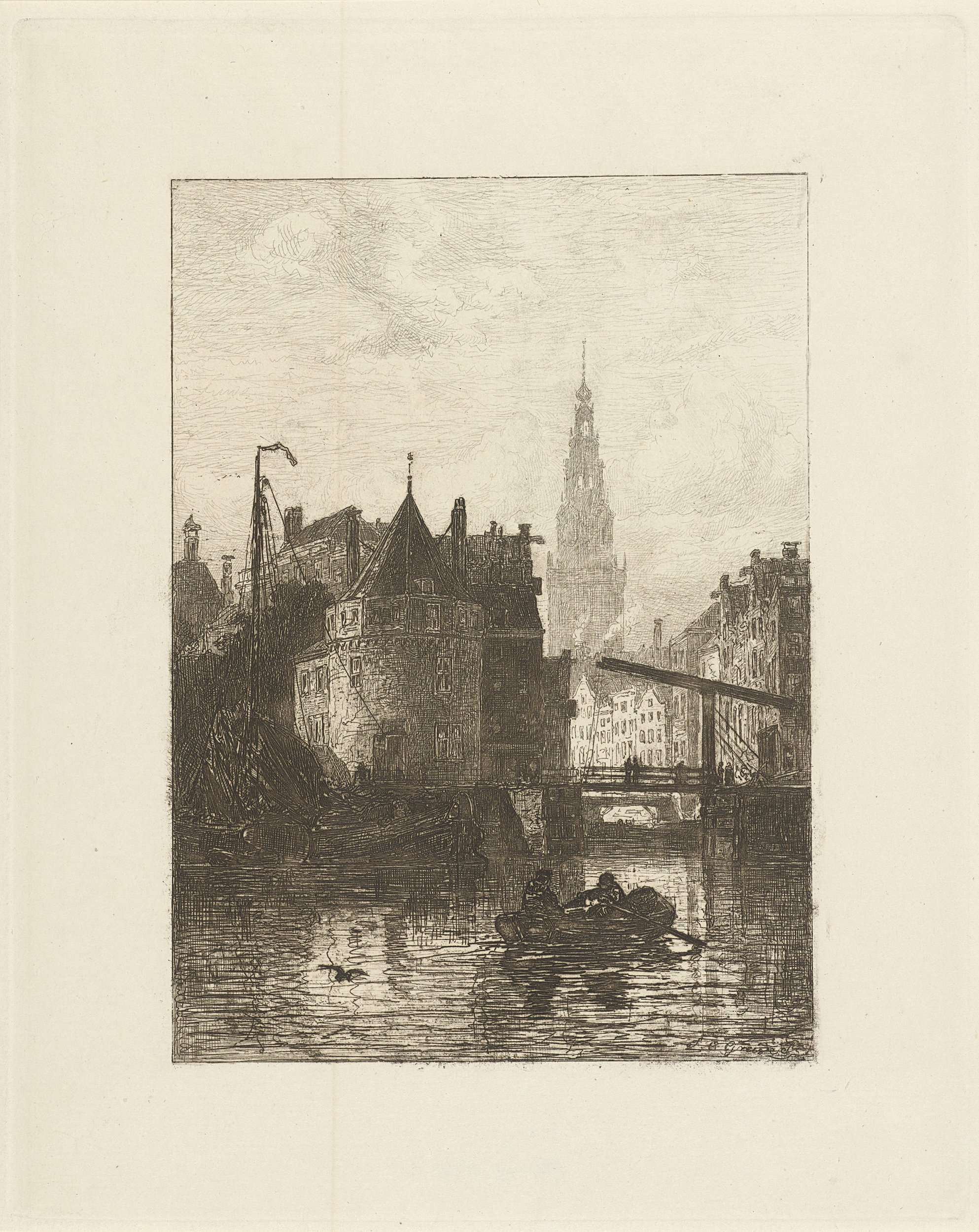 Gezicht op de Scheierstoren te Amsterdam