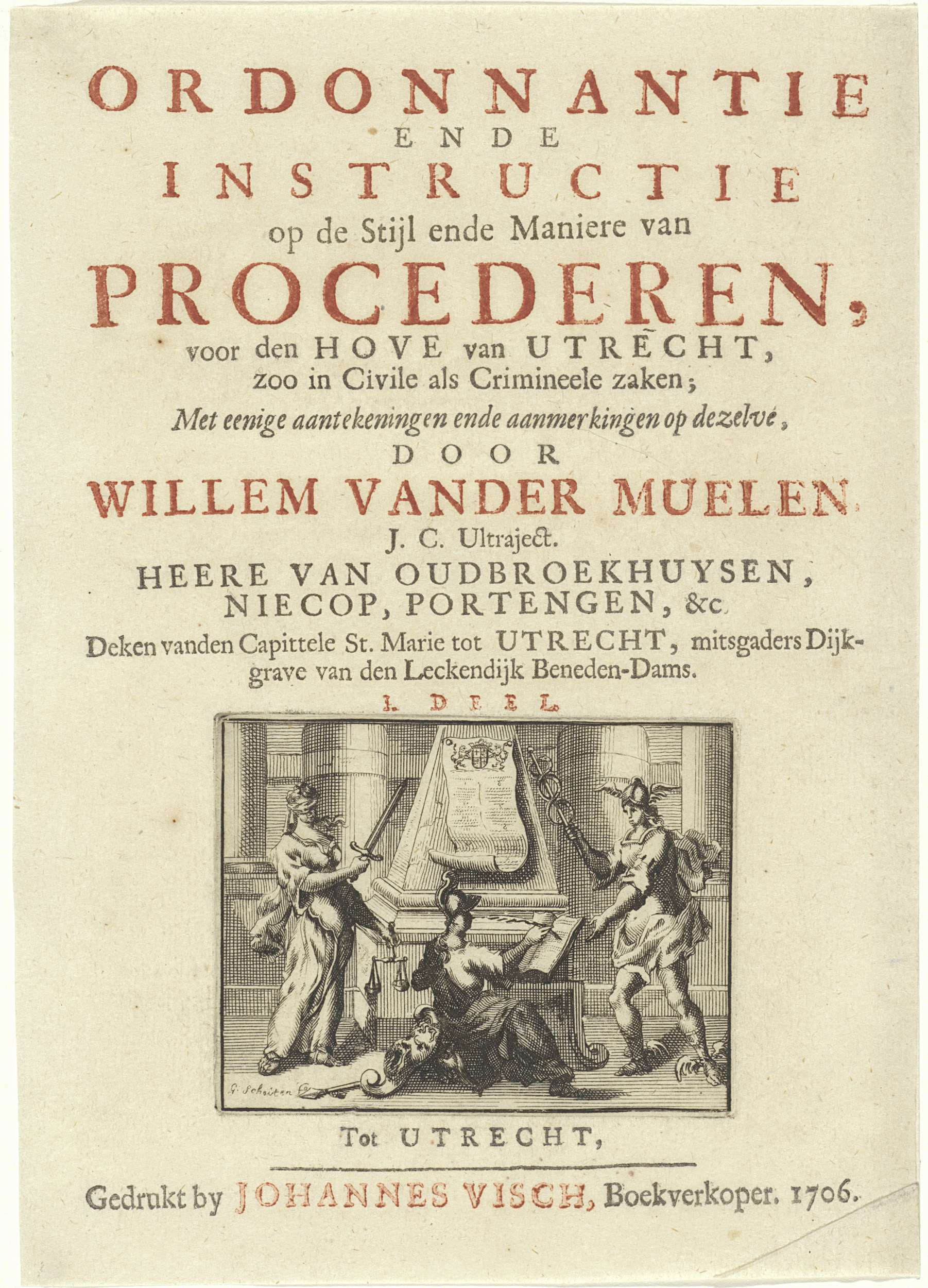 Titelpagina voor: Ordonantie ende Instructie op de Stijl ende Maniere van Procederen voor den Hove van Utrecht., 1706