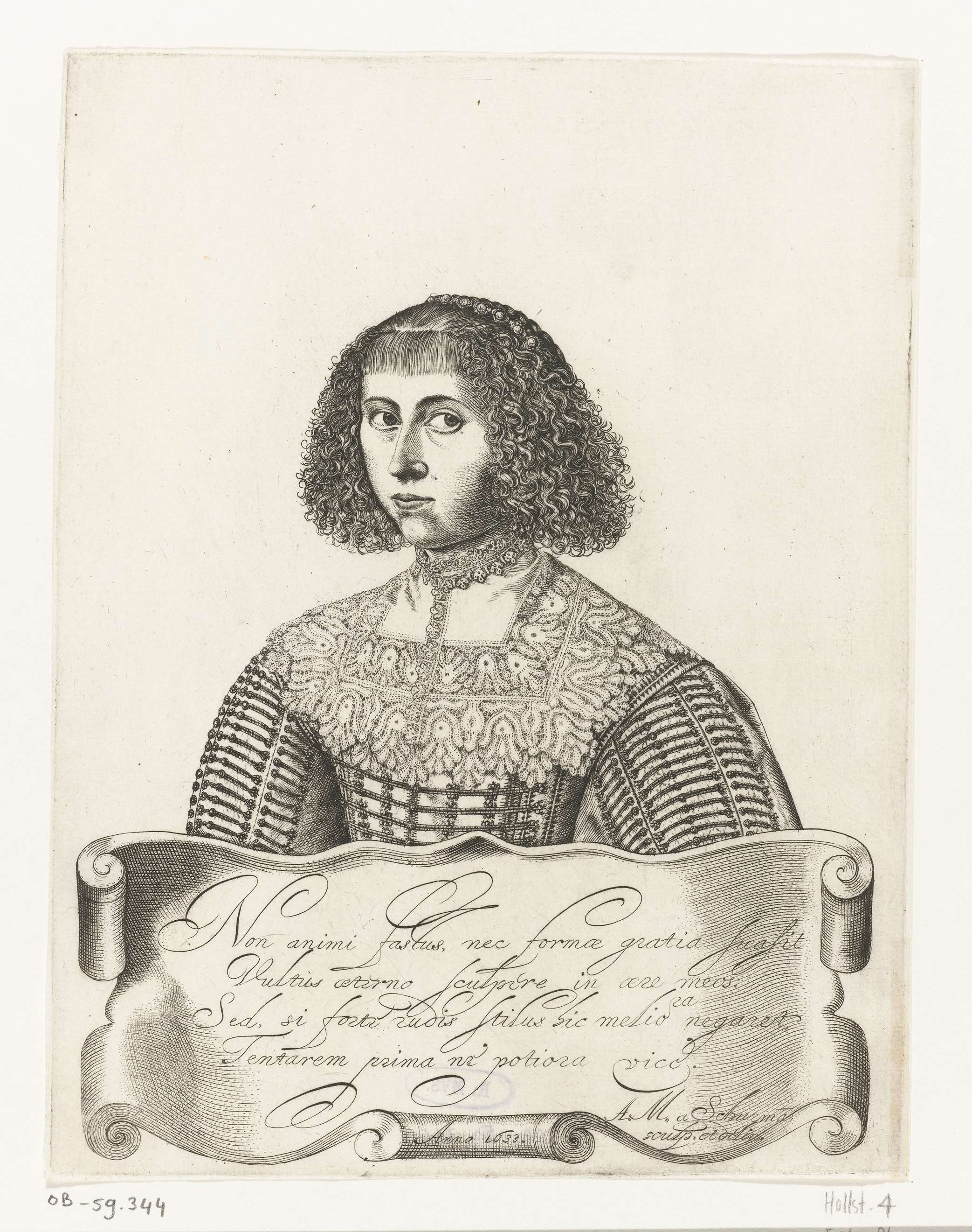 Zelfportret van Anna Maria van Schurman, geleerde, dichteres en kunstenares.