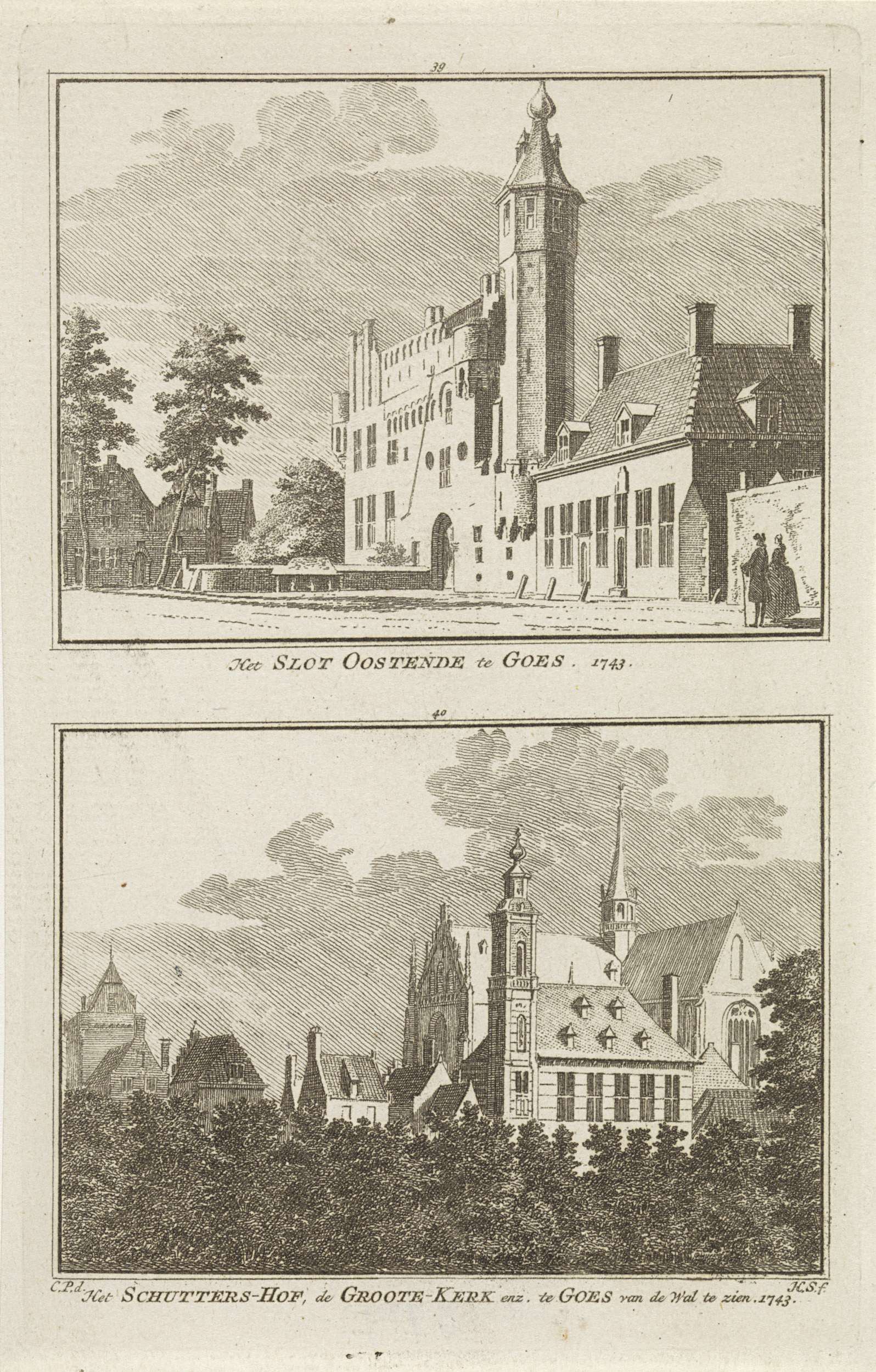 Gezichten op slot Ostende en de stad Goes