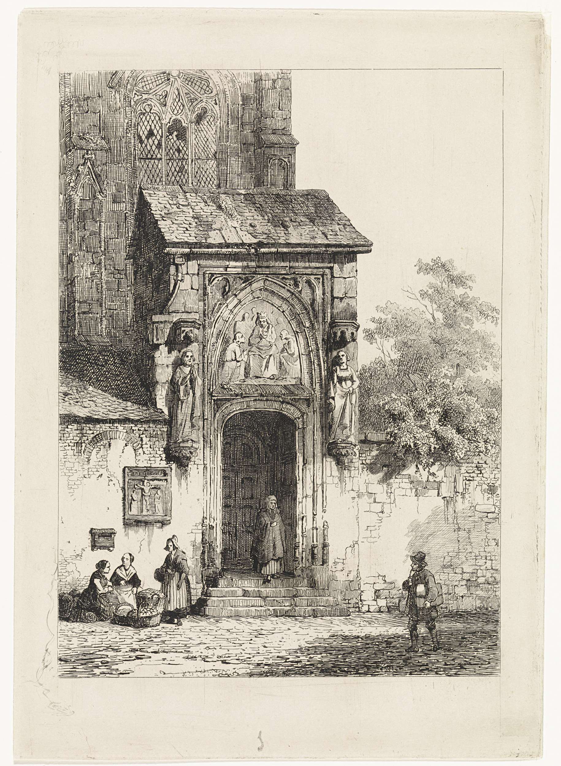 Gezicht op een kerkportaal