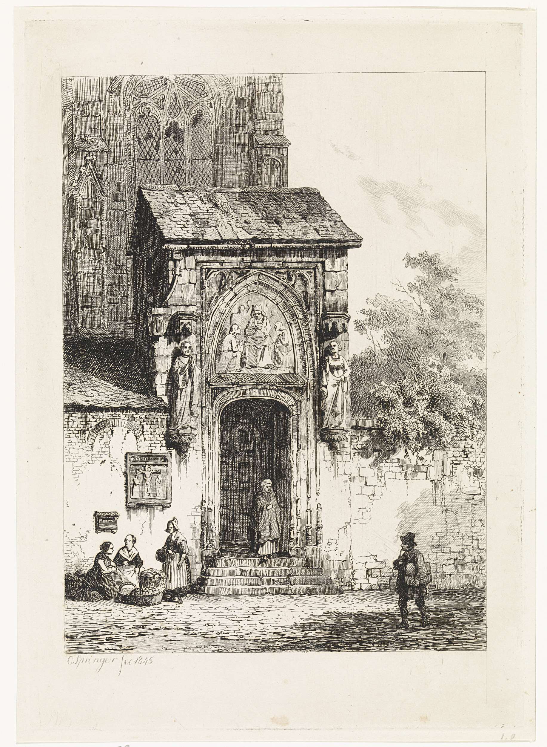 Gezicht op een kerkportaal