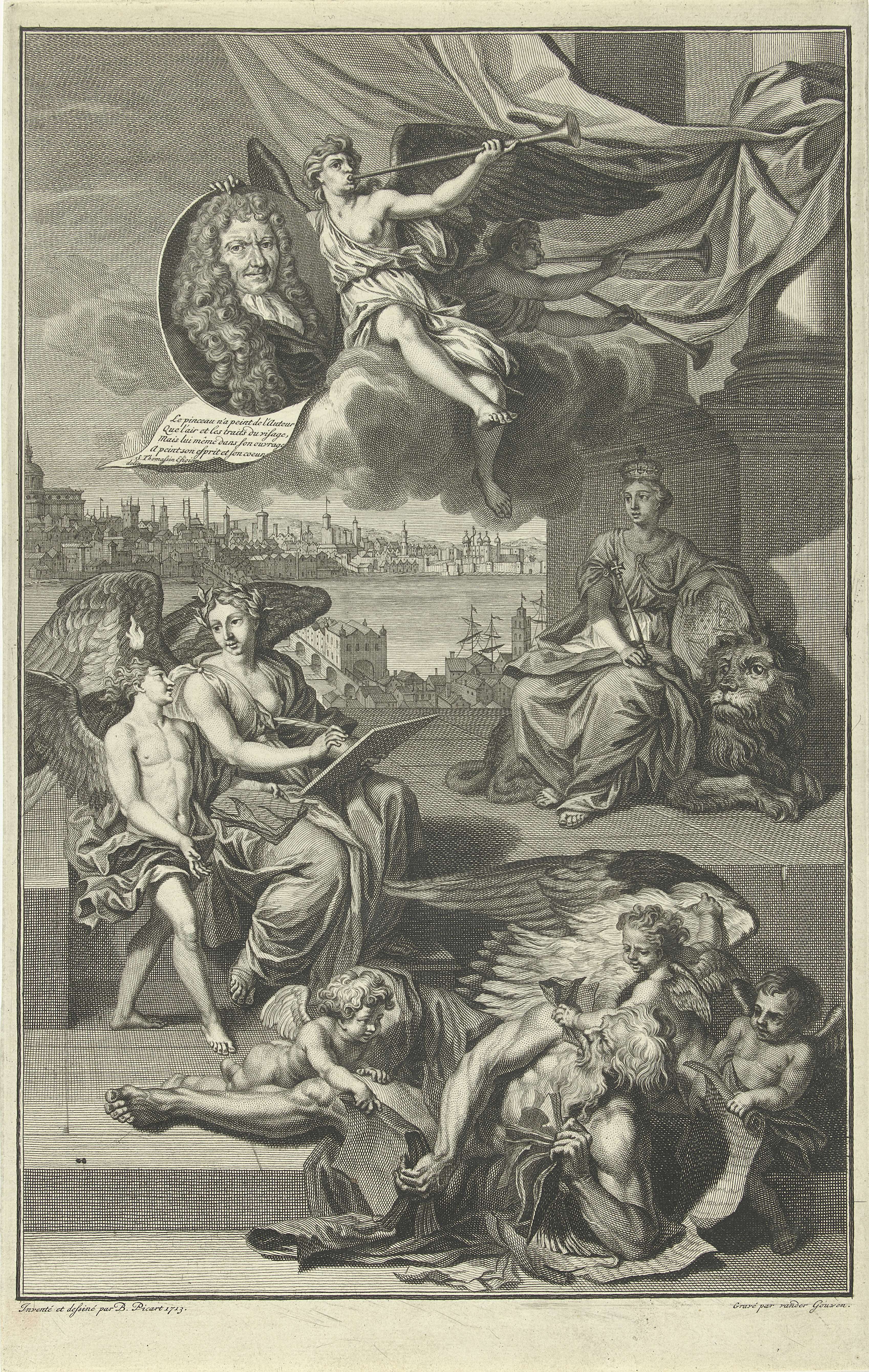 Allegorie op de geschiedenis van Groot-Brittannië met het portret van Isaac de Larrey