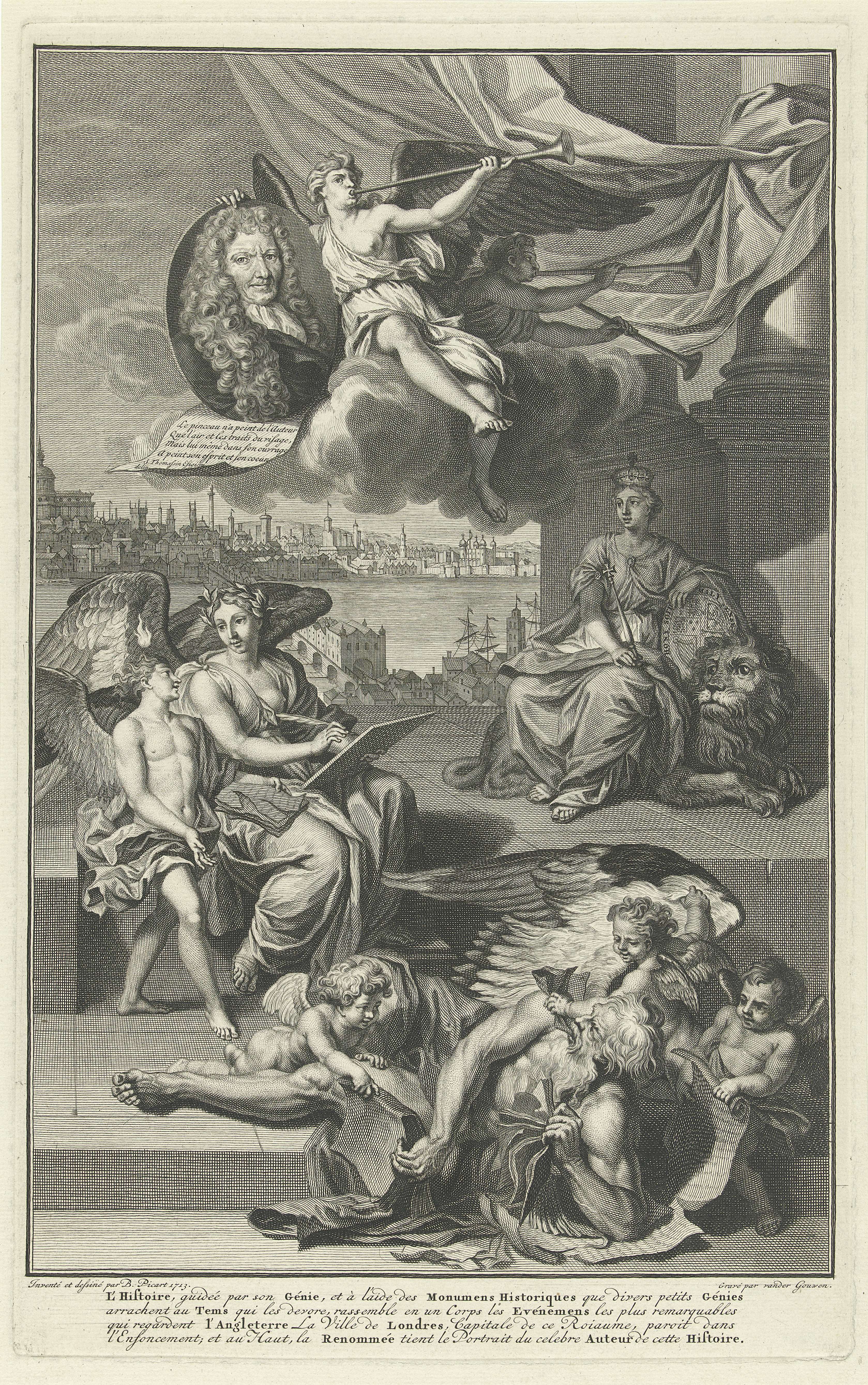 Allegorie op de geschiedenis van Groot-Brittannië met het portret van Isaac de Larrey