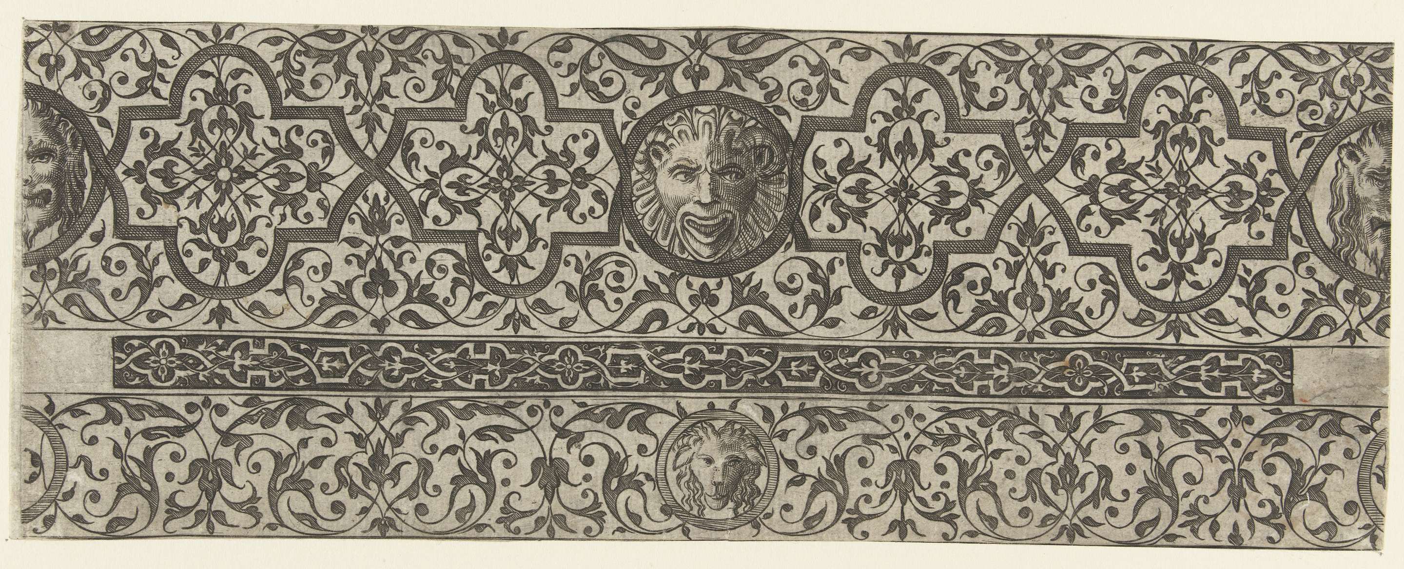 Breed en een zeer smal fries met moresken en een fries met arabesken boven elkaar