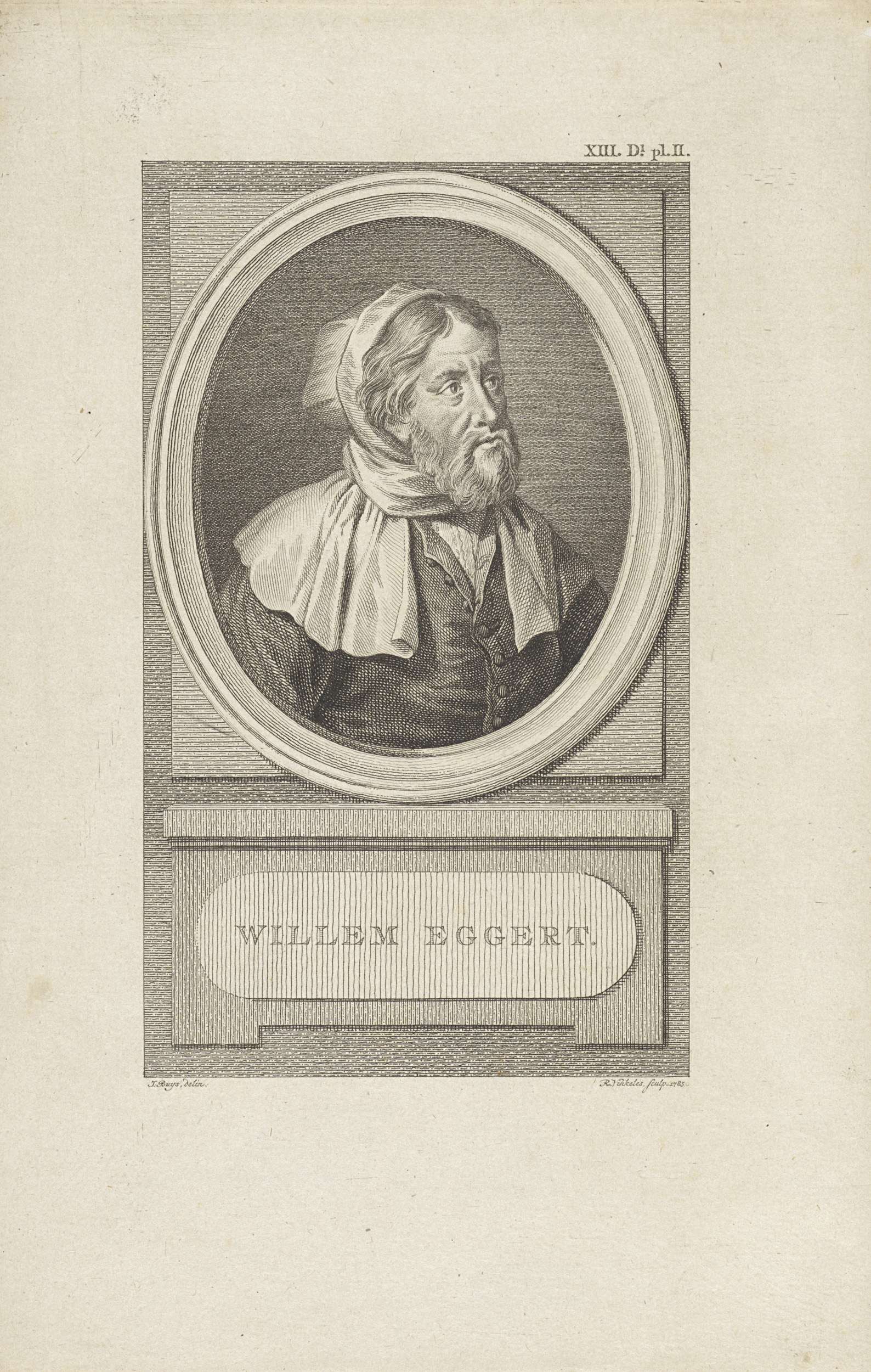 Portret van Willem Eggert, rentmeester en stadhouder van Holland. Rechtsboven: XIII Dl. pl. II.