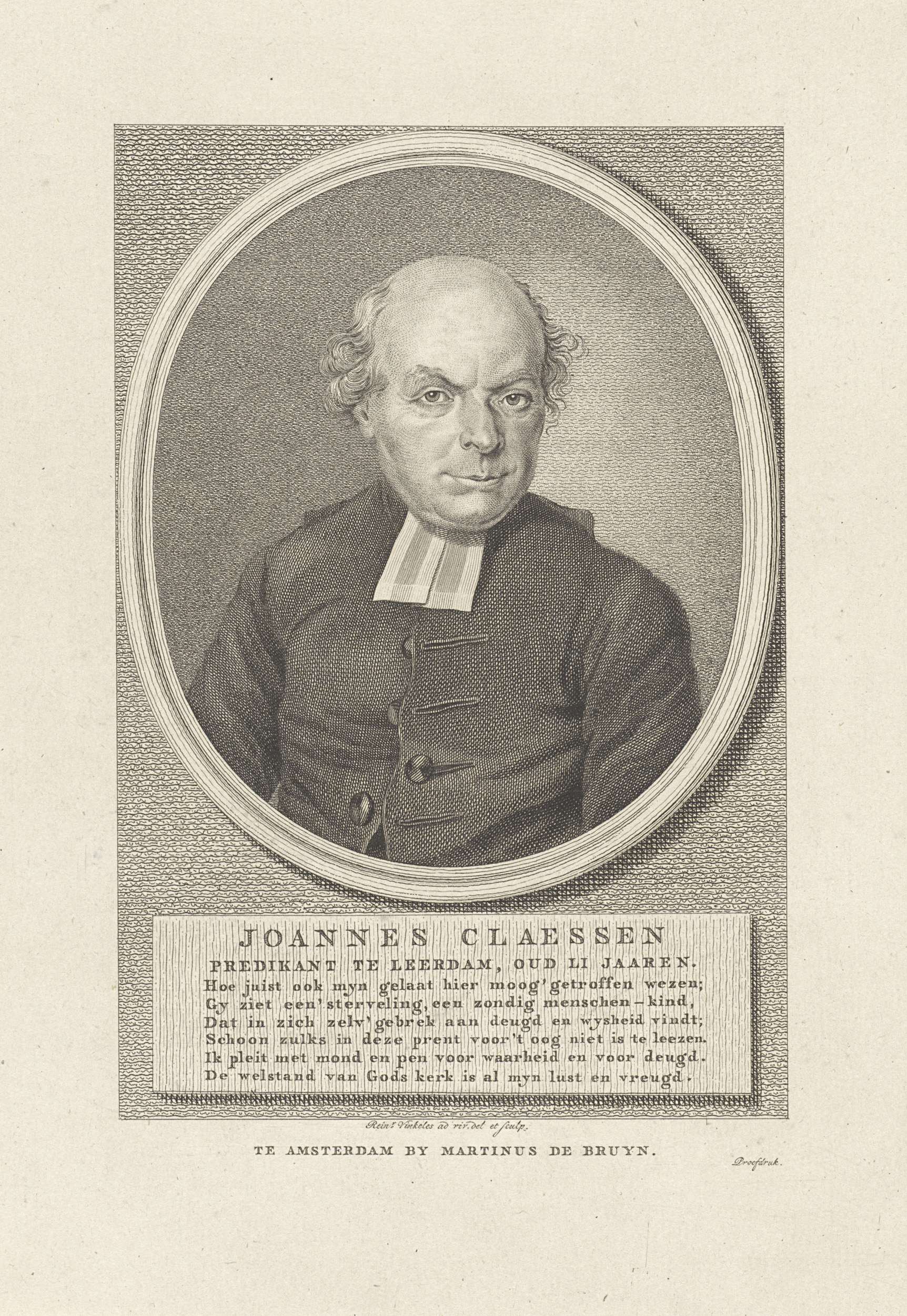 Portret van Joannes Claessen, predikant te Leerdam, op 51-jarige leeftijd.