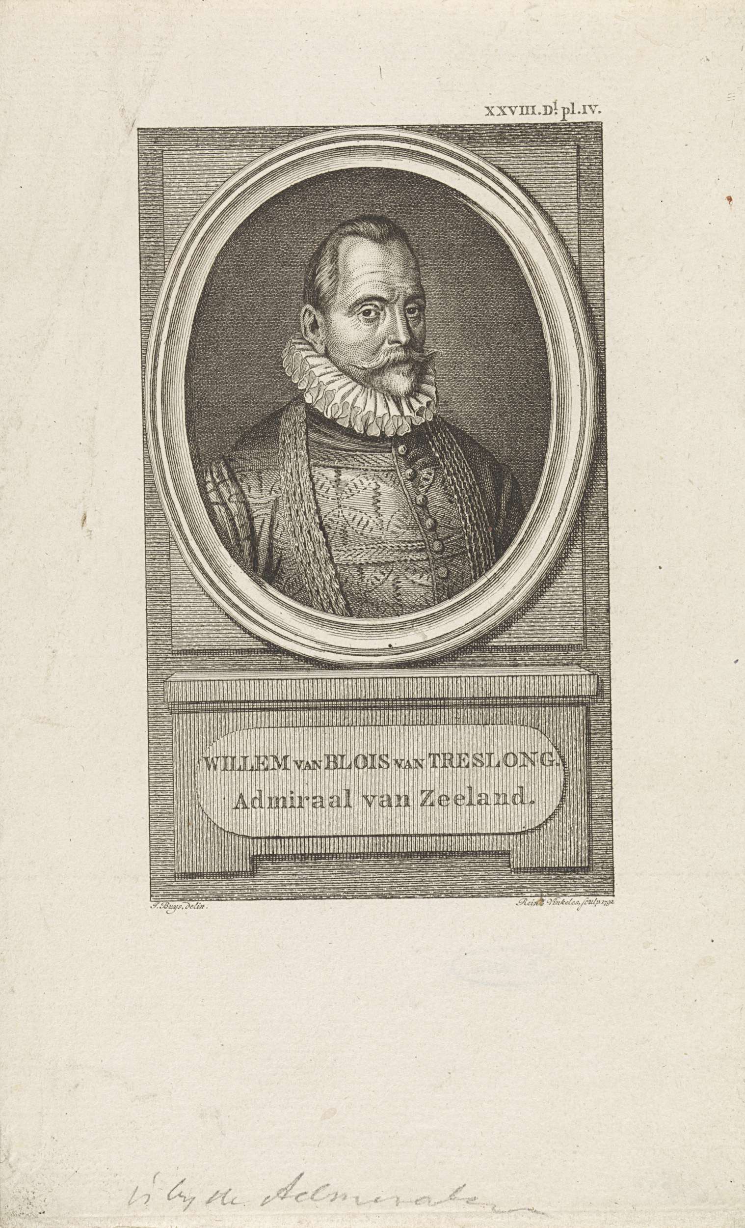 Portret van Willem van Bloys van Treslong, admiraal van Zeeland. Rechtsboven: XXVIII Dl. pl. IV.