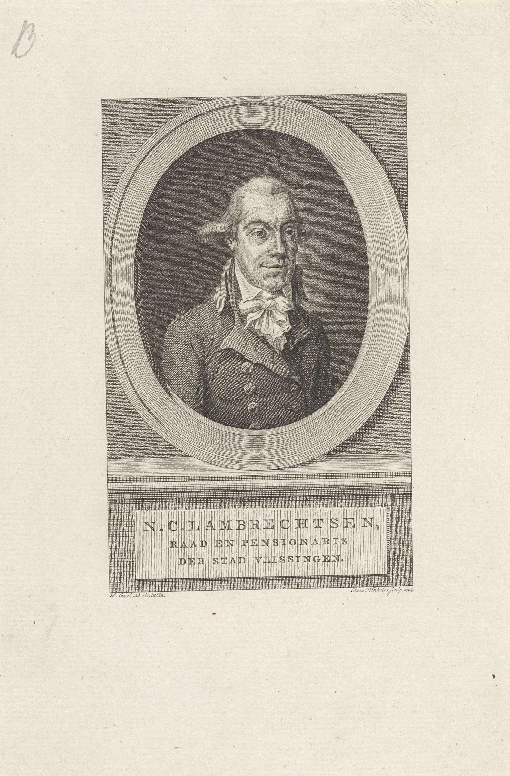 Portret van Nicolaas Cornelis Lambrechtsen van Ritthem, pensionaris van Vlissingen.