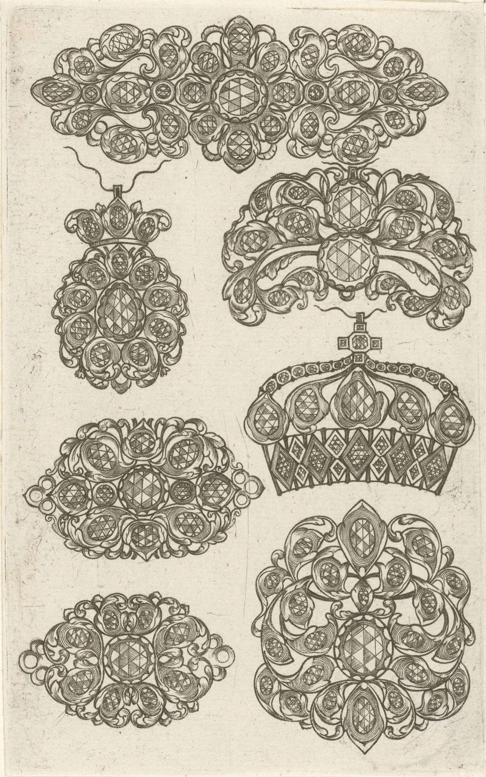 Ontwerpen voor onder andere hangers en een gesp. Uit serie bestaande uit een titelblad en 9 bladen.