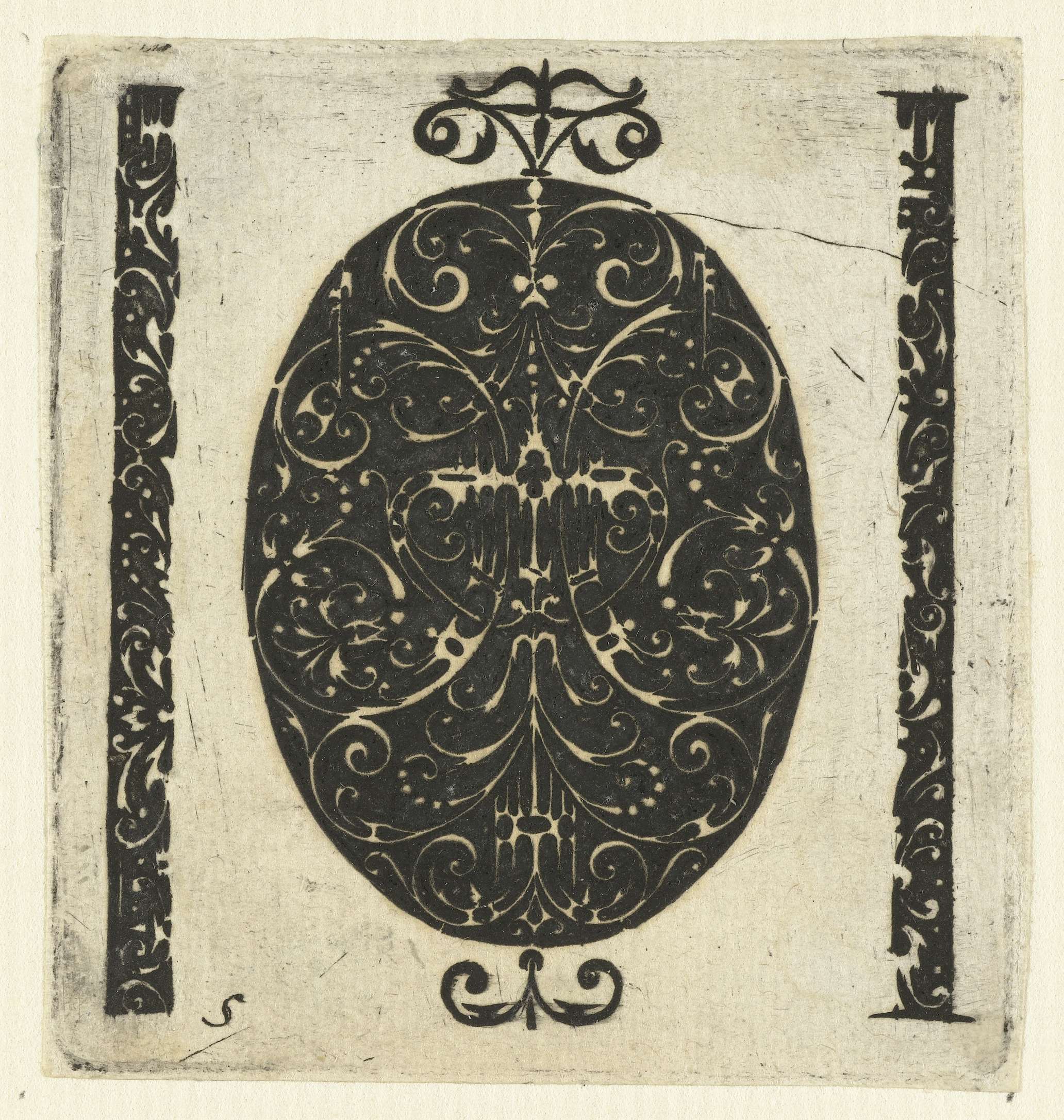 Groot ovaal ornament en twee verticale stroken