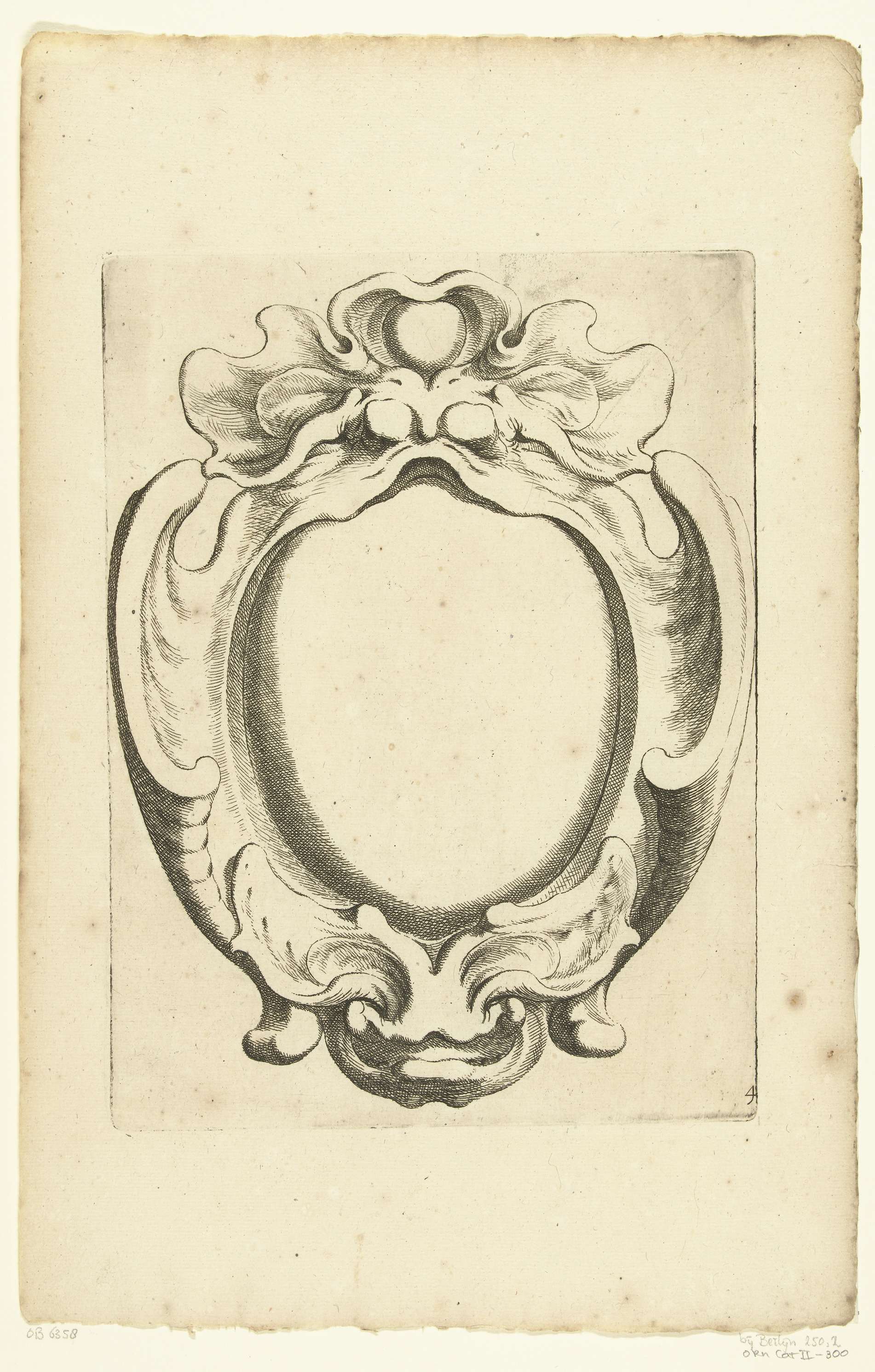 Verticale kwabcartouche met twee maskers