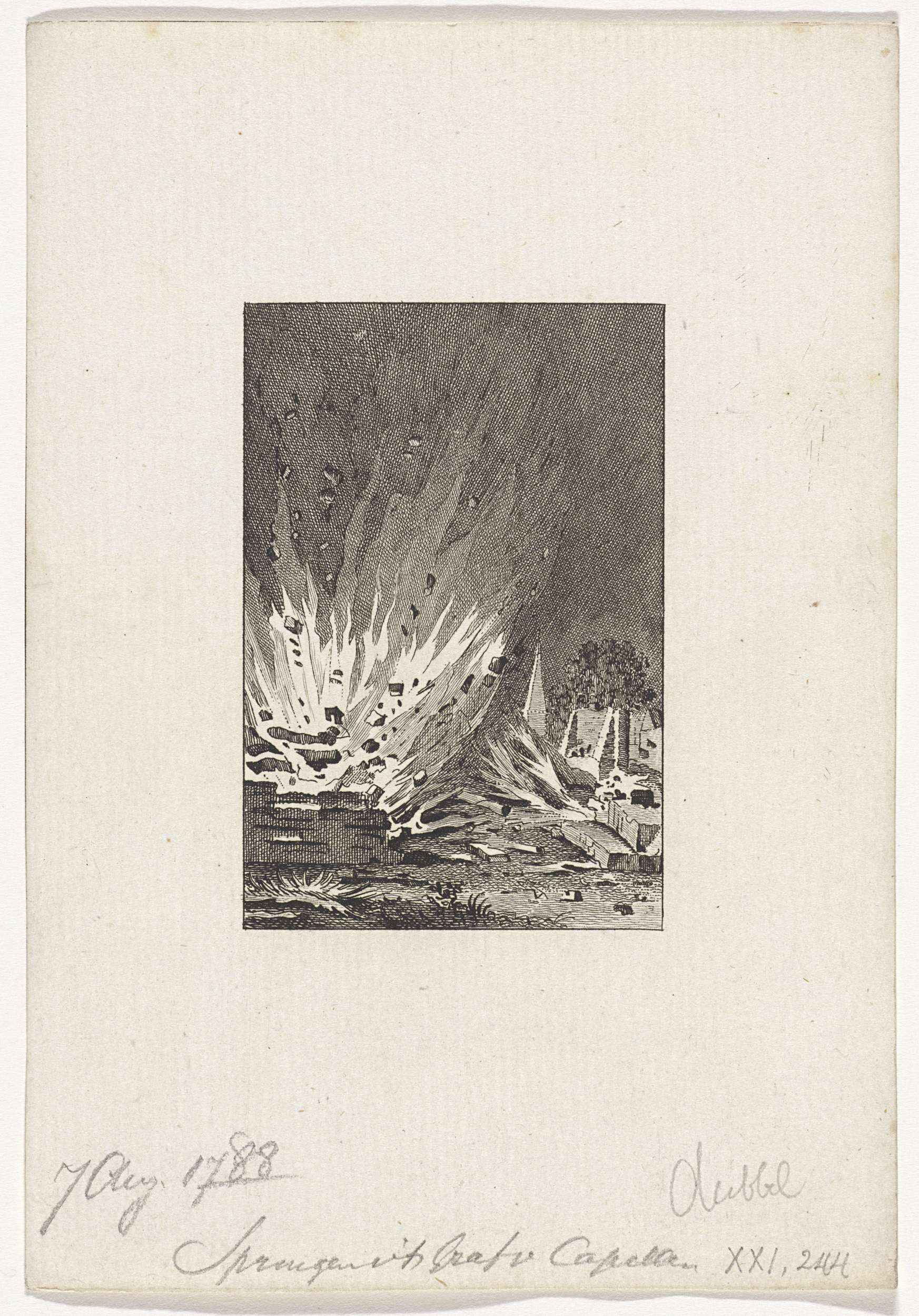 Het opblazen met buskruit van het familiegraf van de familie Van der Capellen in het Gorsselse Veld bij Zutphen, 7 augustus 1788.