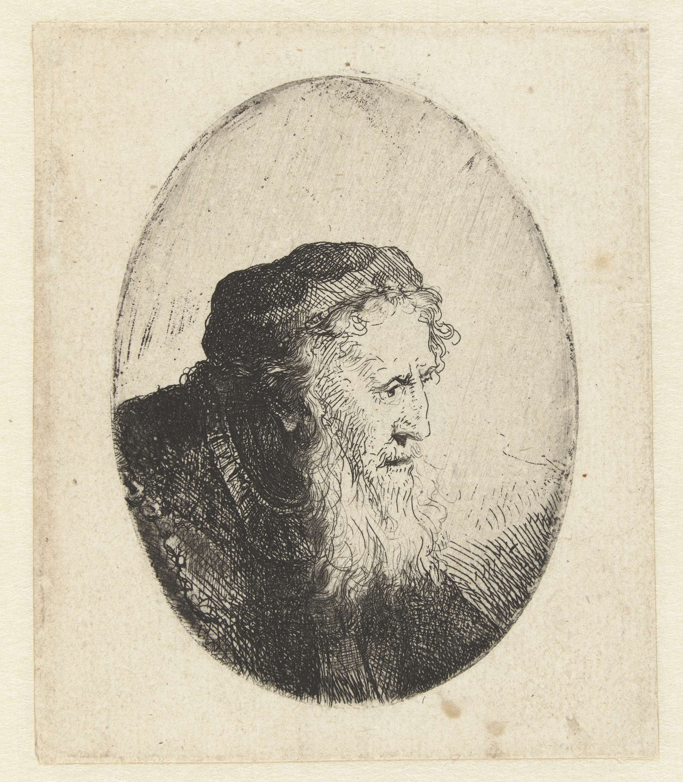 Oude man met baard in ovaal