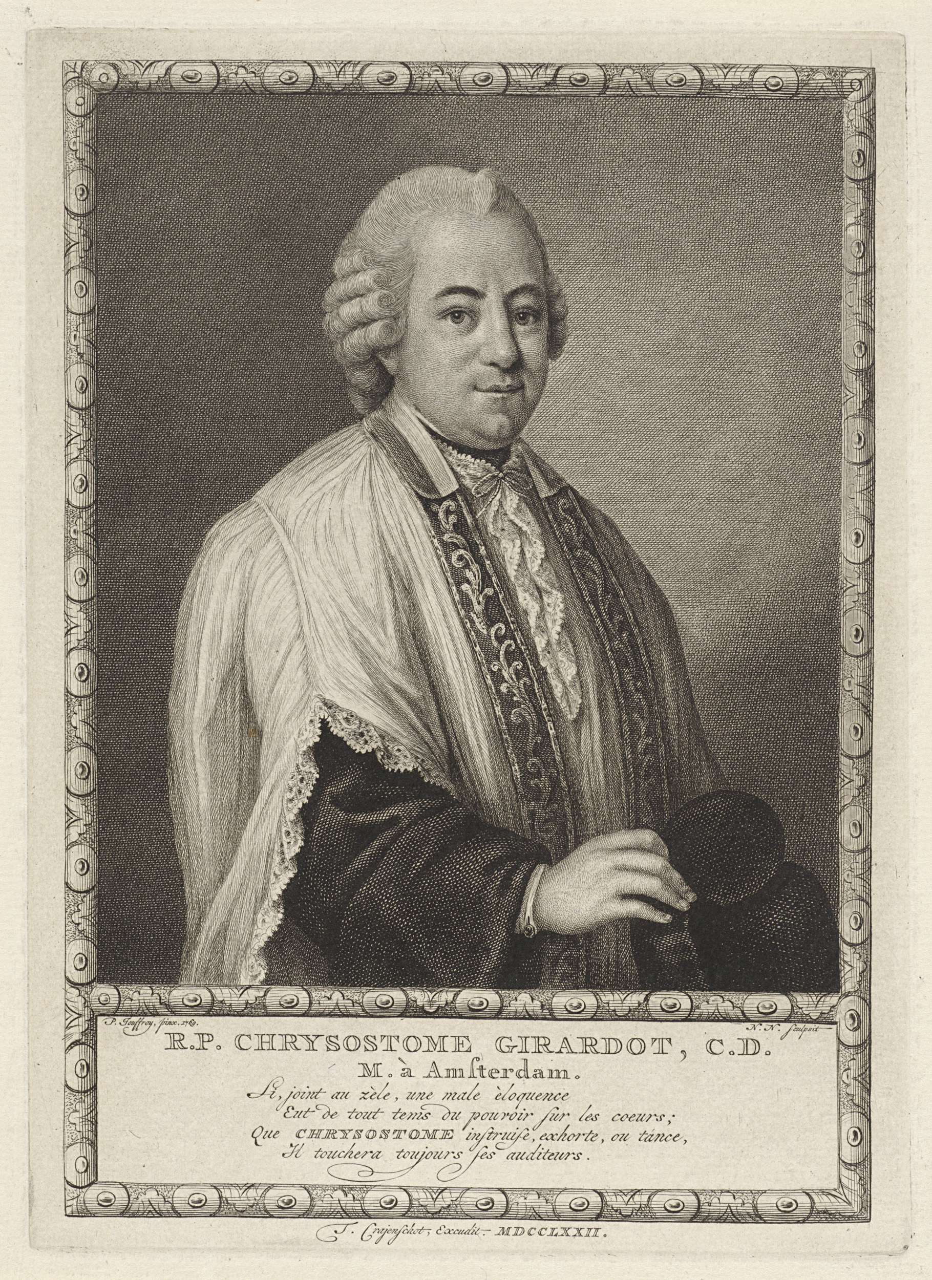 Portret van Chrysostome Girardot, Frans pastoor te Amsterdam, gekleed in zijn priesterkleed.