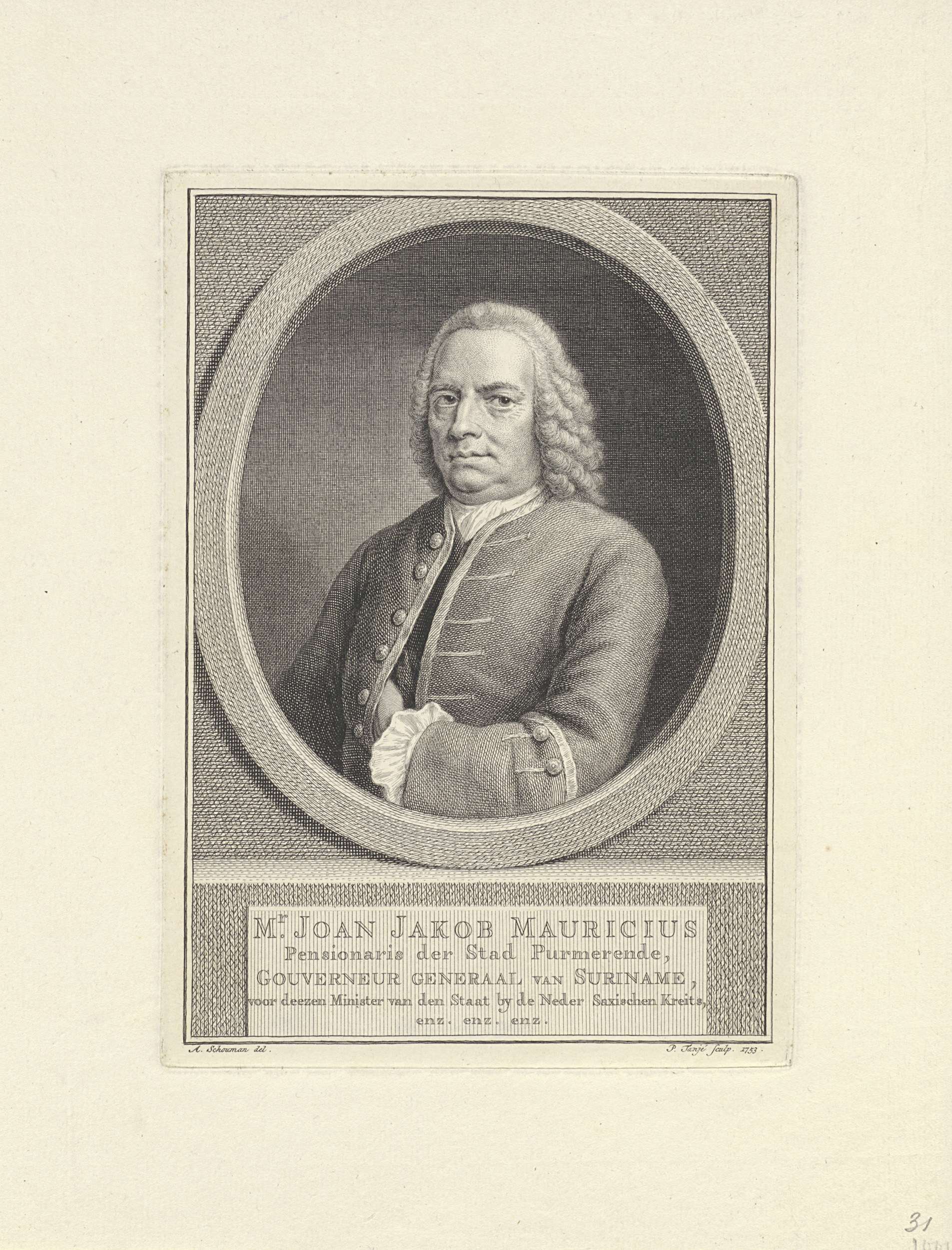 Portret van Joan Jacob Mauricius, schepen en pensionaris van Purmerend en gouverneur van Suriname.