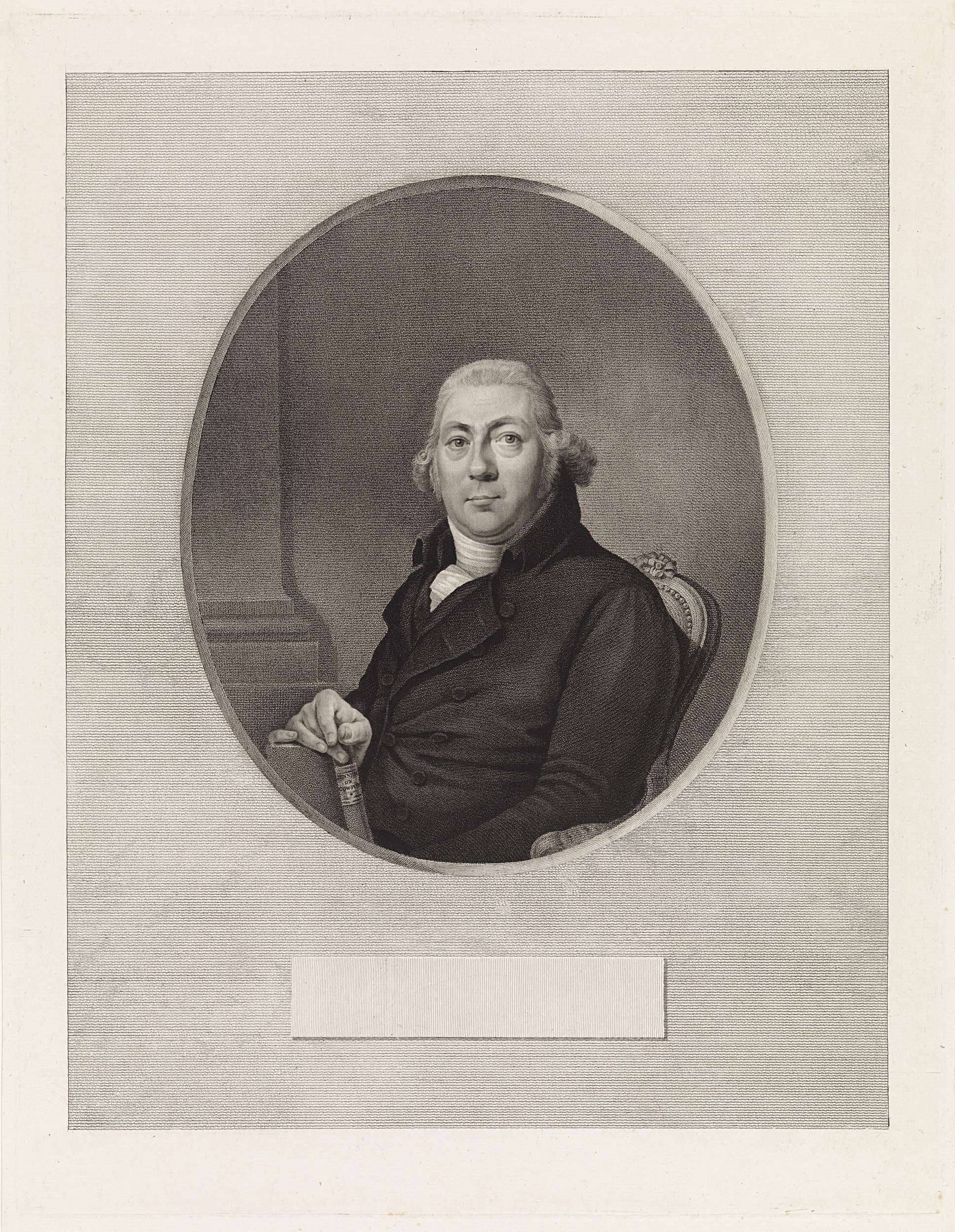 Portret van de schrijver Phoebus Hitzerus Themmen. In zijn hand houdt hij het boek Further Observations on the Variolæ Vaccinæ, or Cow-Pox (1799) van Edward Anthony Jenner.