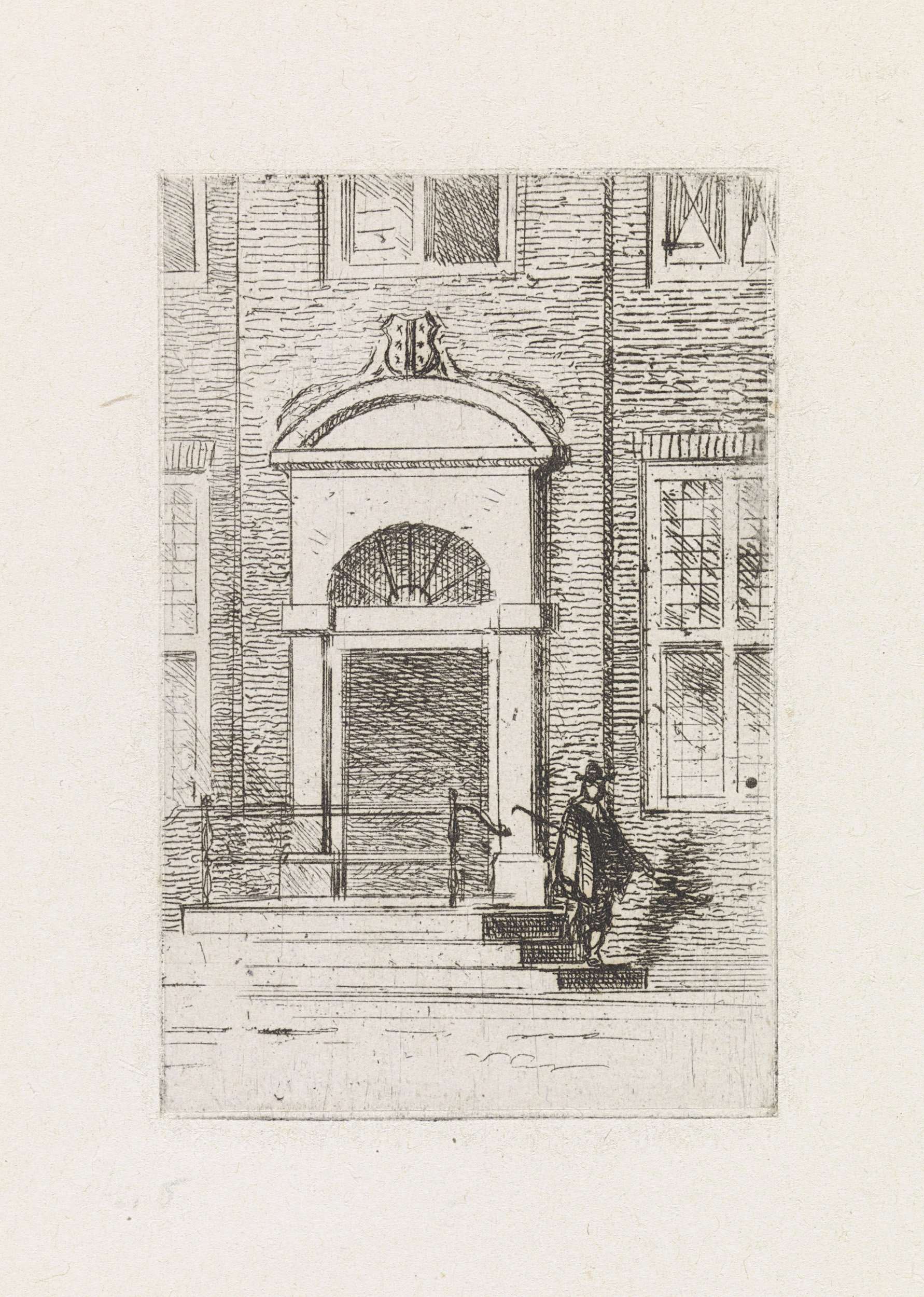 Man op een trap bij de deur van een huis
