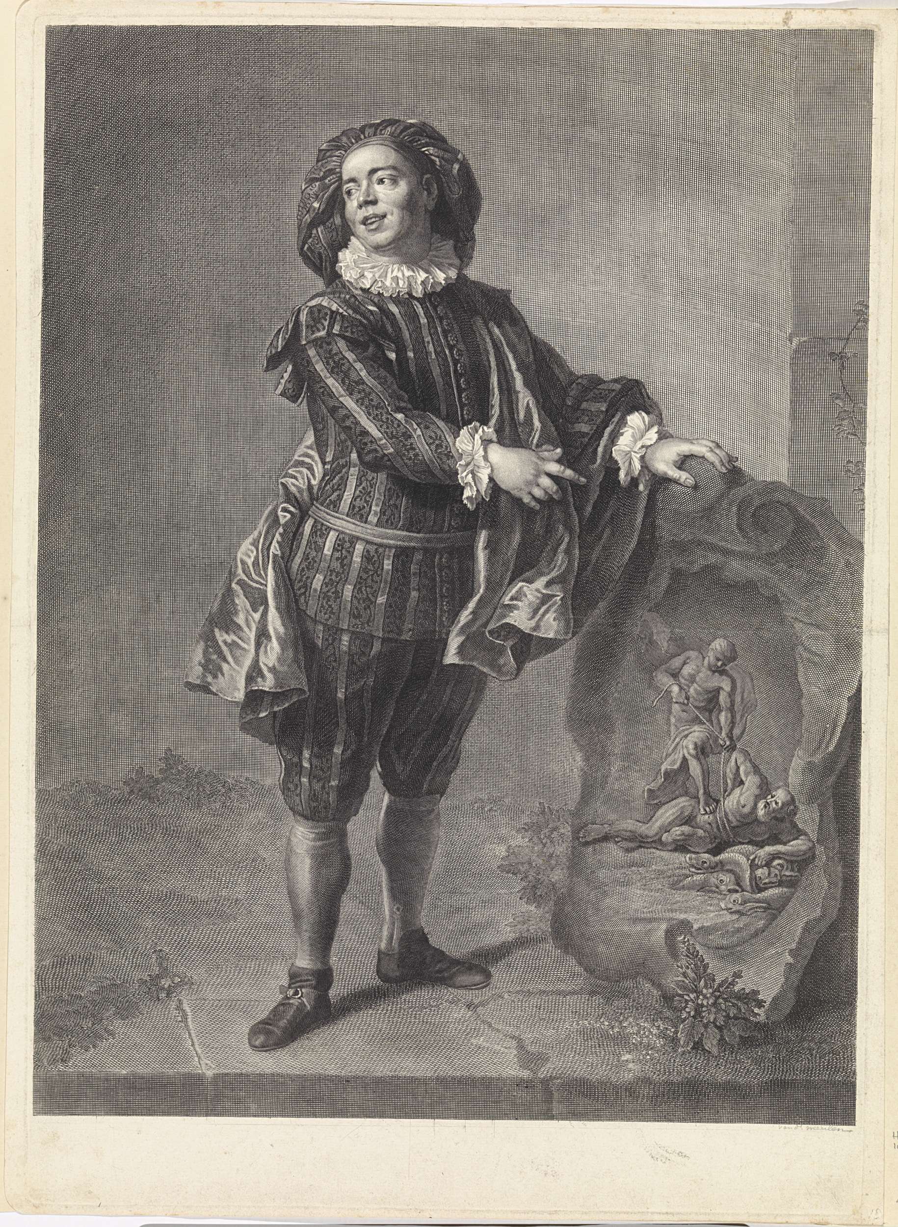 De Italiaanse acteur Angelo Constantini, in de rol van het karakter Mezzetino, een tragisch-komisch toneelpersonage.