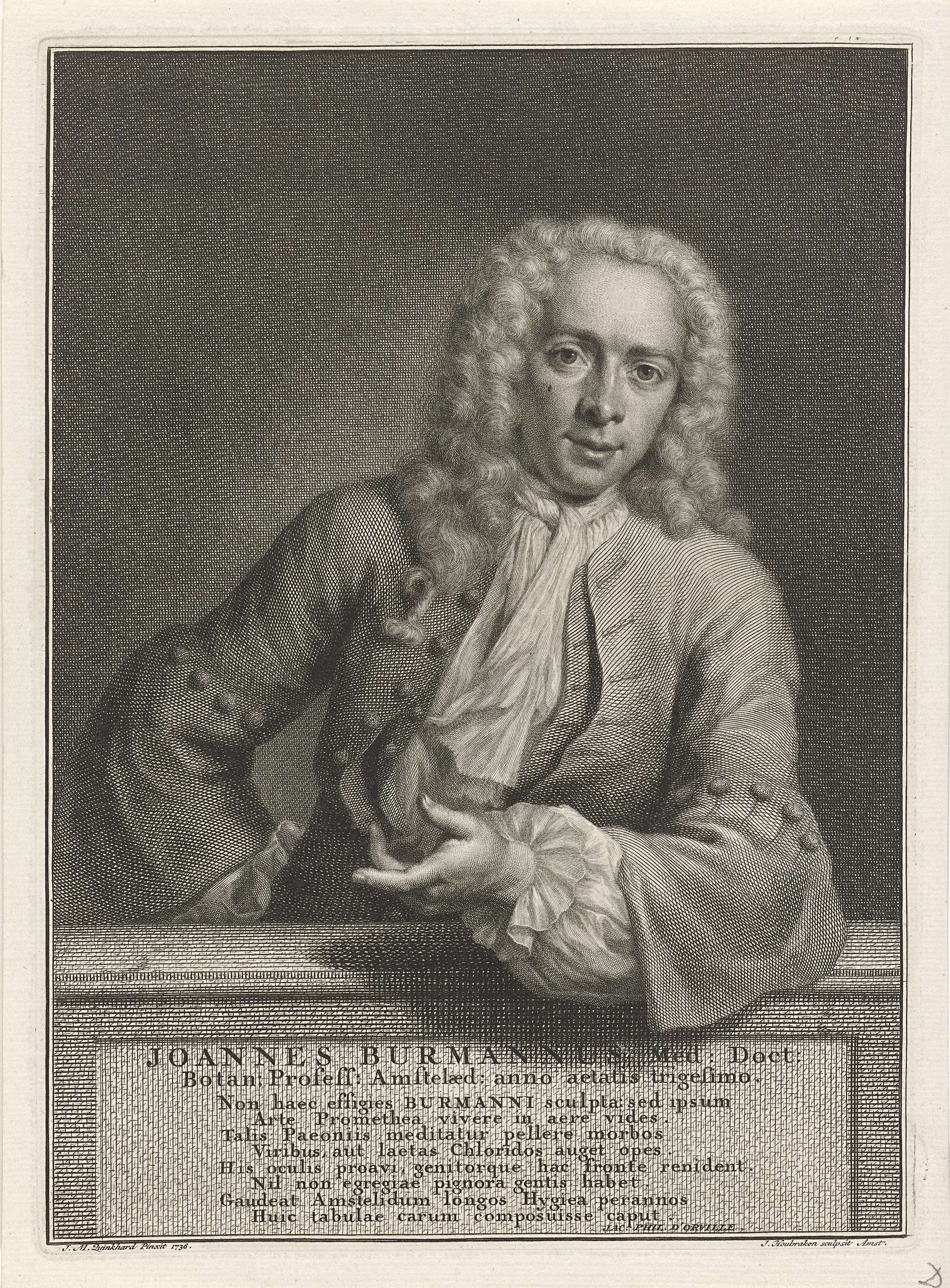 Portret ten halven lijve van Johannes Burman, achter een plint, waarbij zijn linkerhand over de rand steekt. Op de plint zijn naam en gegevens in twee regels in het Latijn. Daaronder een achtregelig vers in het Latijn.