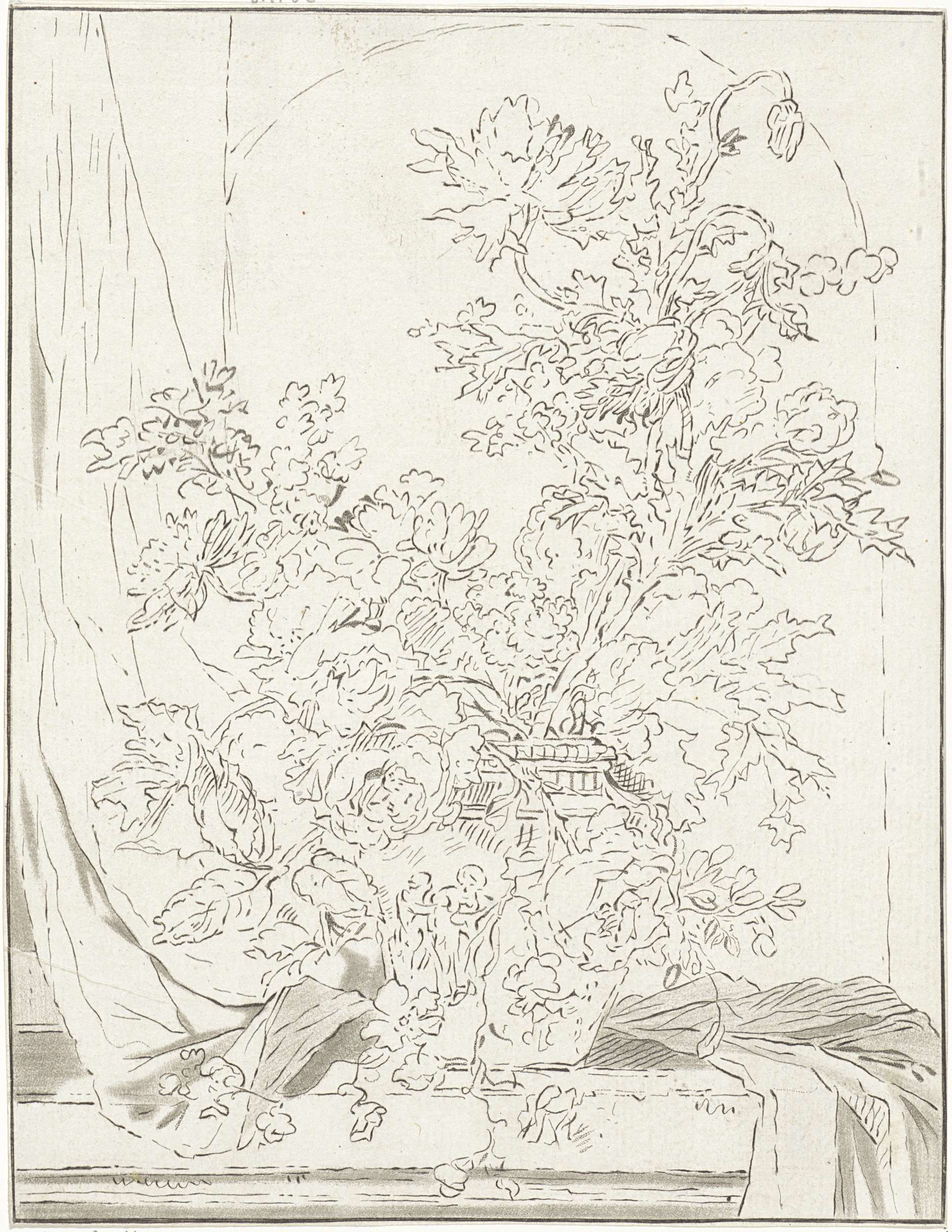 Vaas met bloemen voor een nis