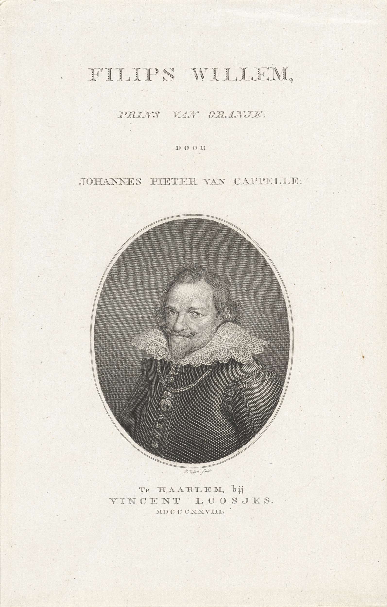 Portret van Filips Willem, prins van Oranje, met om zijn hals een ketting met het teken van de Orde van het Gulden Vlies.