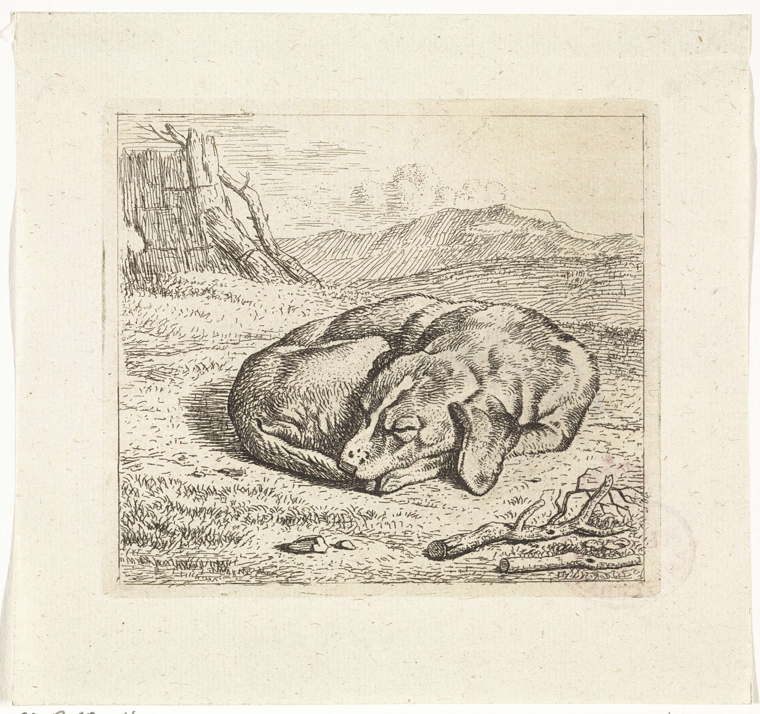 Slapende hond in landschap