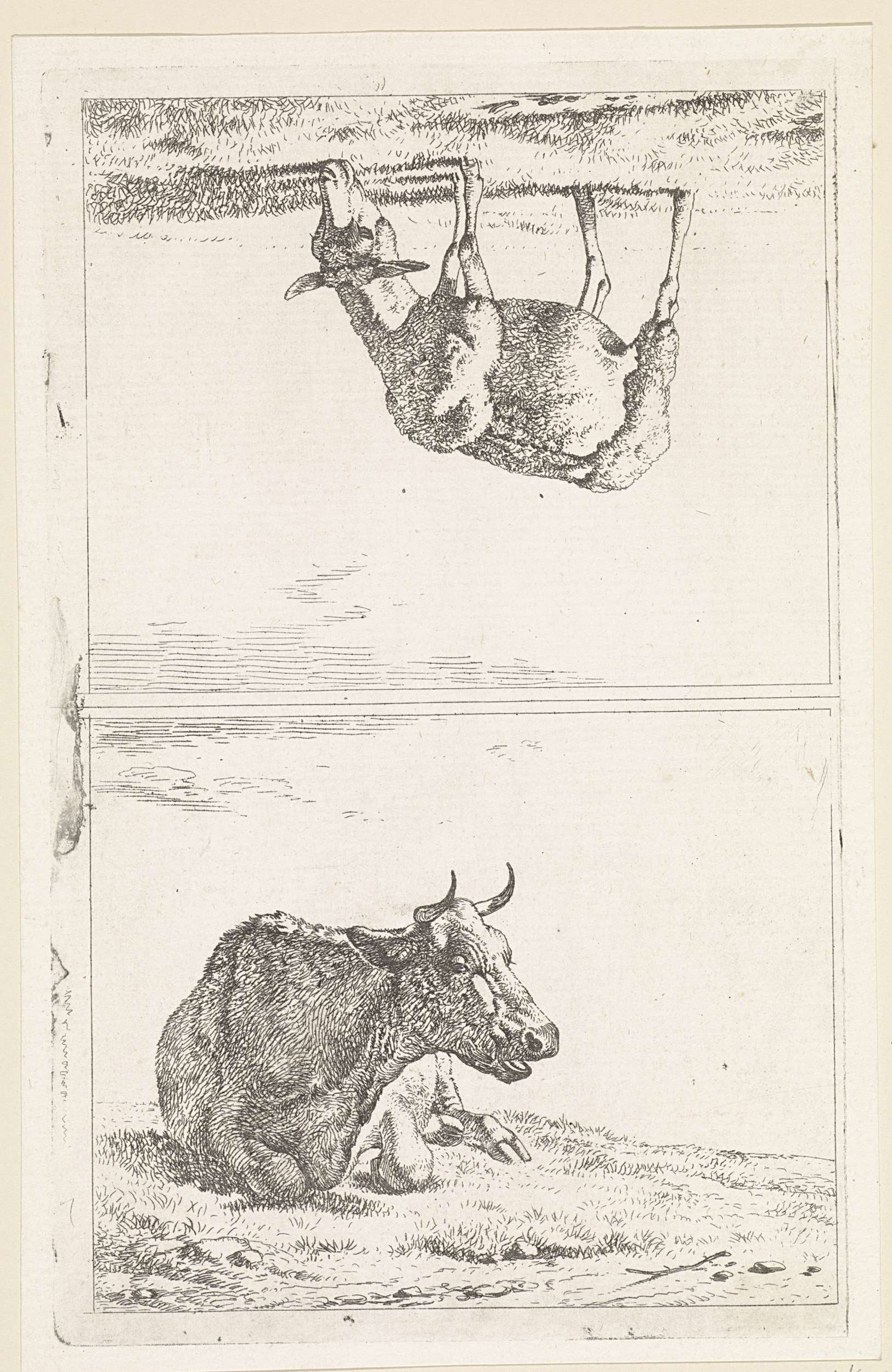 Liggende koe / Grazend schaap naar rechts