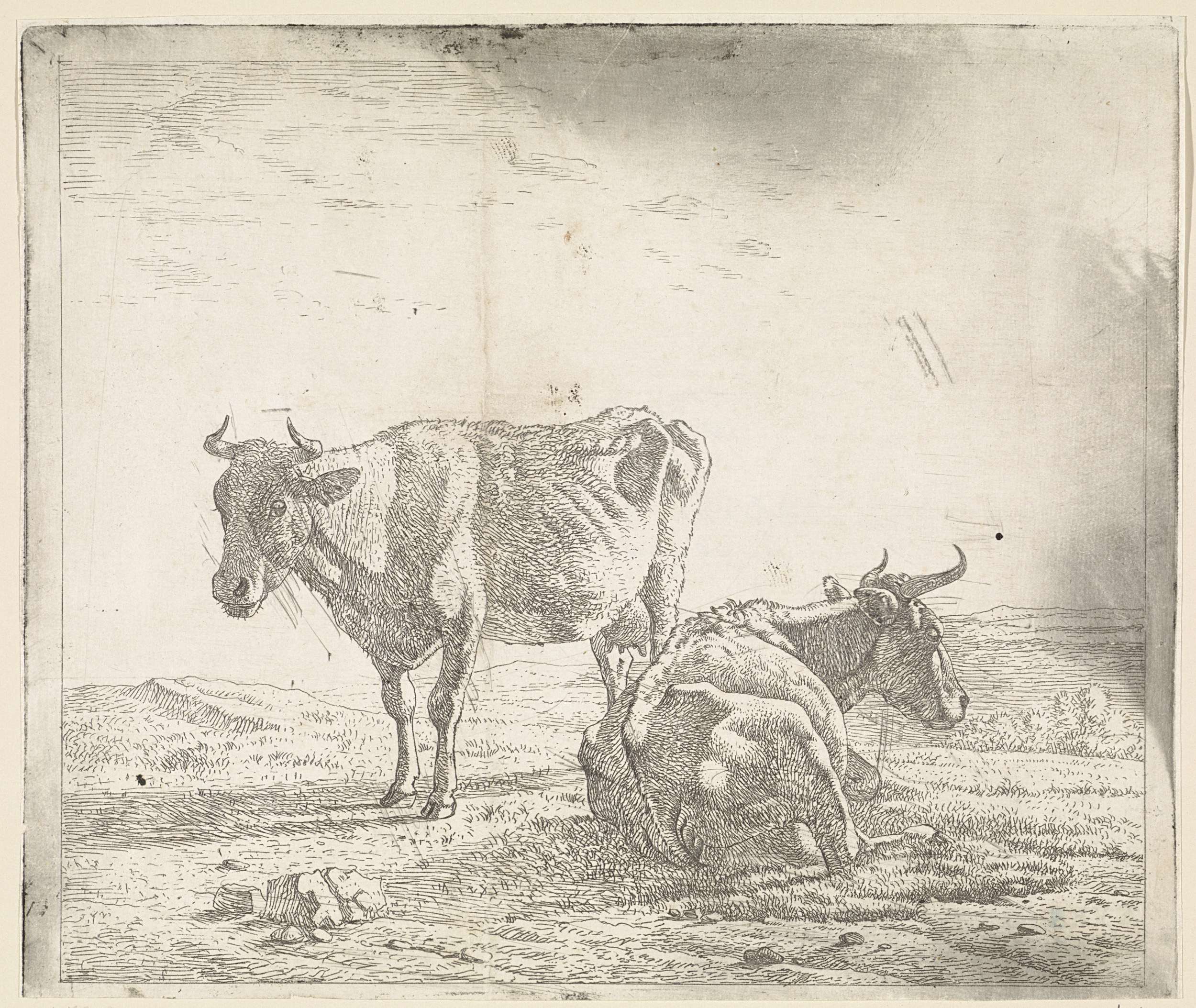Weiland met een staande en liggende koe