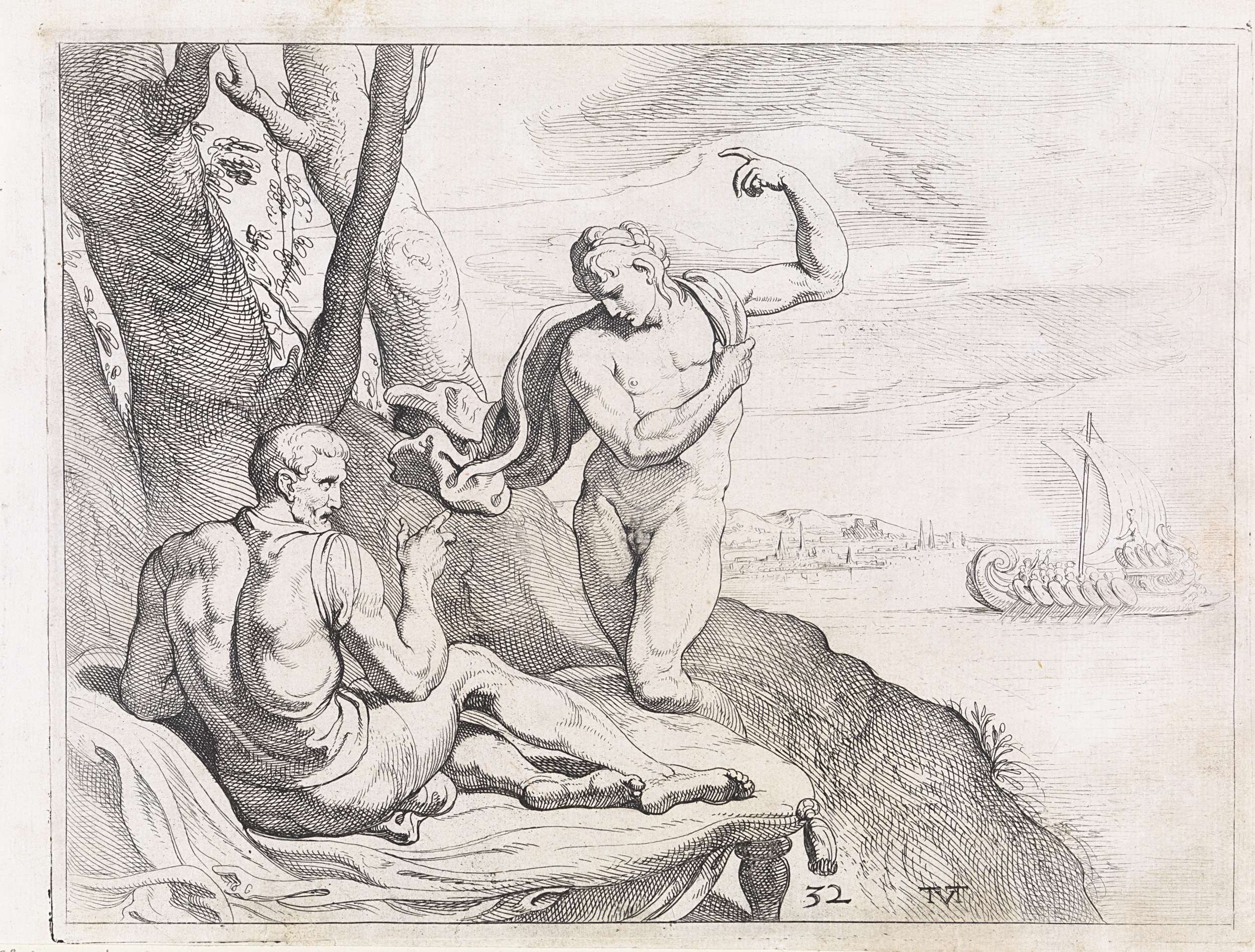 Minerva verschijnt in de gedaante van een jonge prins of Telemachus aan Odysseus.
