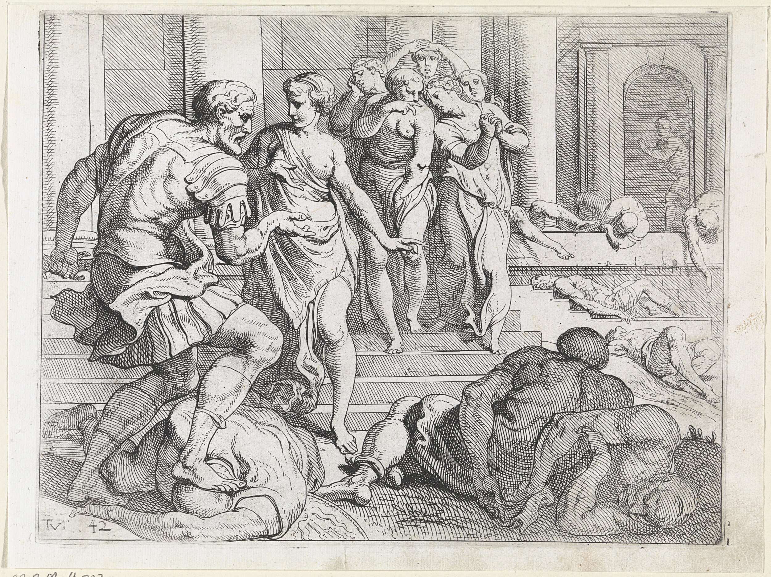 Odysseus, die de vrijers van Penelope heeft gedood, geeft aan zijn voedster Eurykleia de opdracht om alle ontrouwe bedienden van Penelope bij elkaar te brengen.