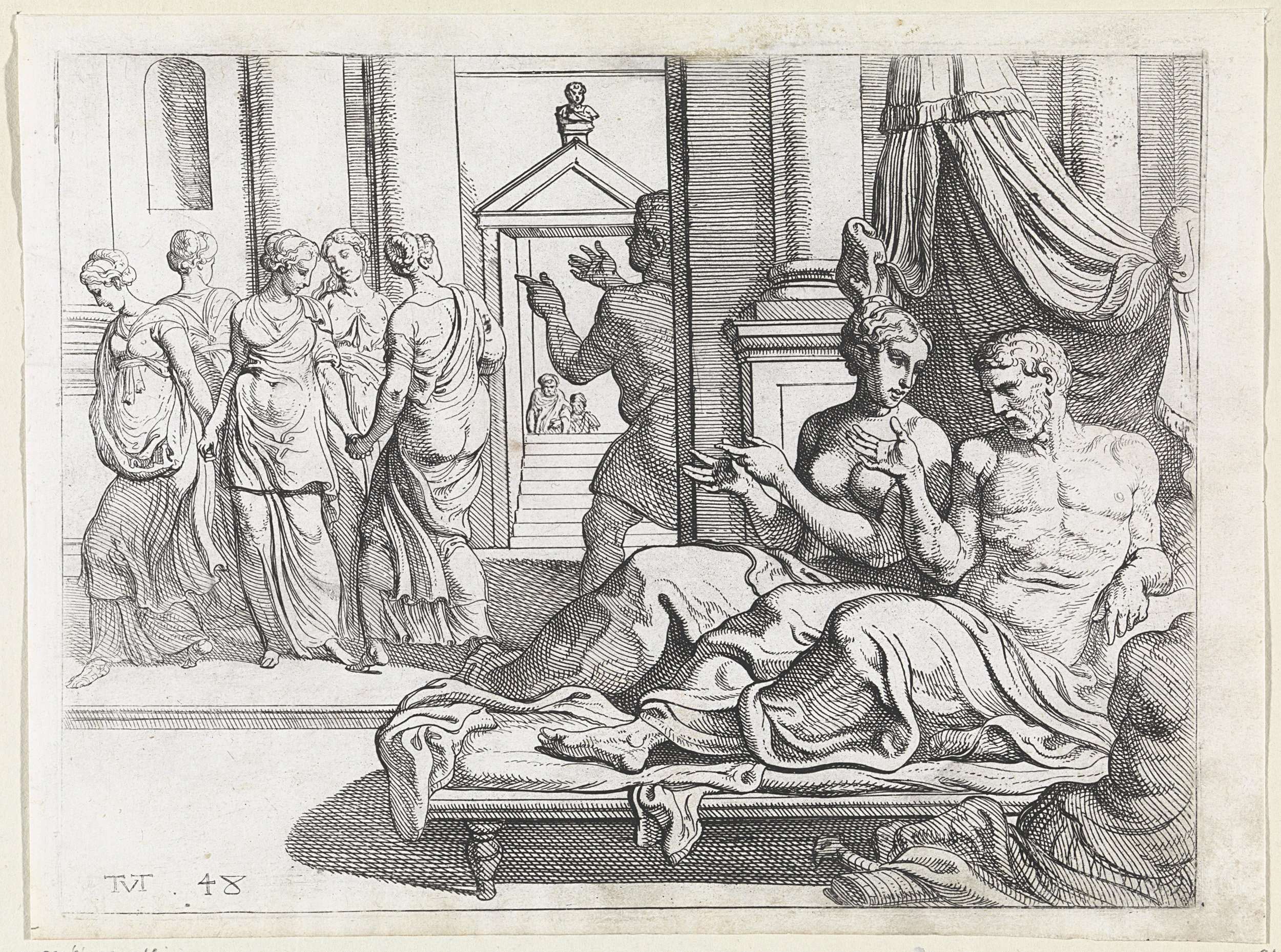 Odysseus vertelt van zijn avonturen aan Penelope, terwijl ze in bed liggen.