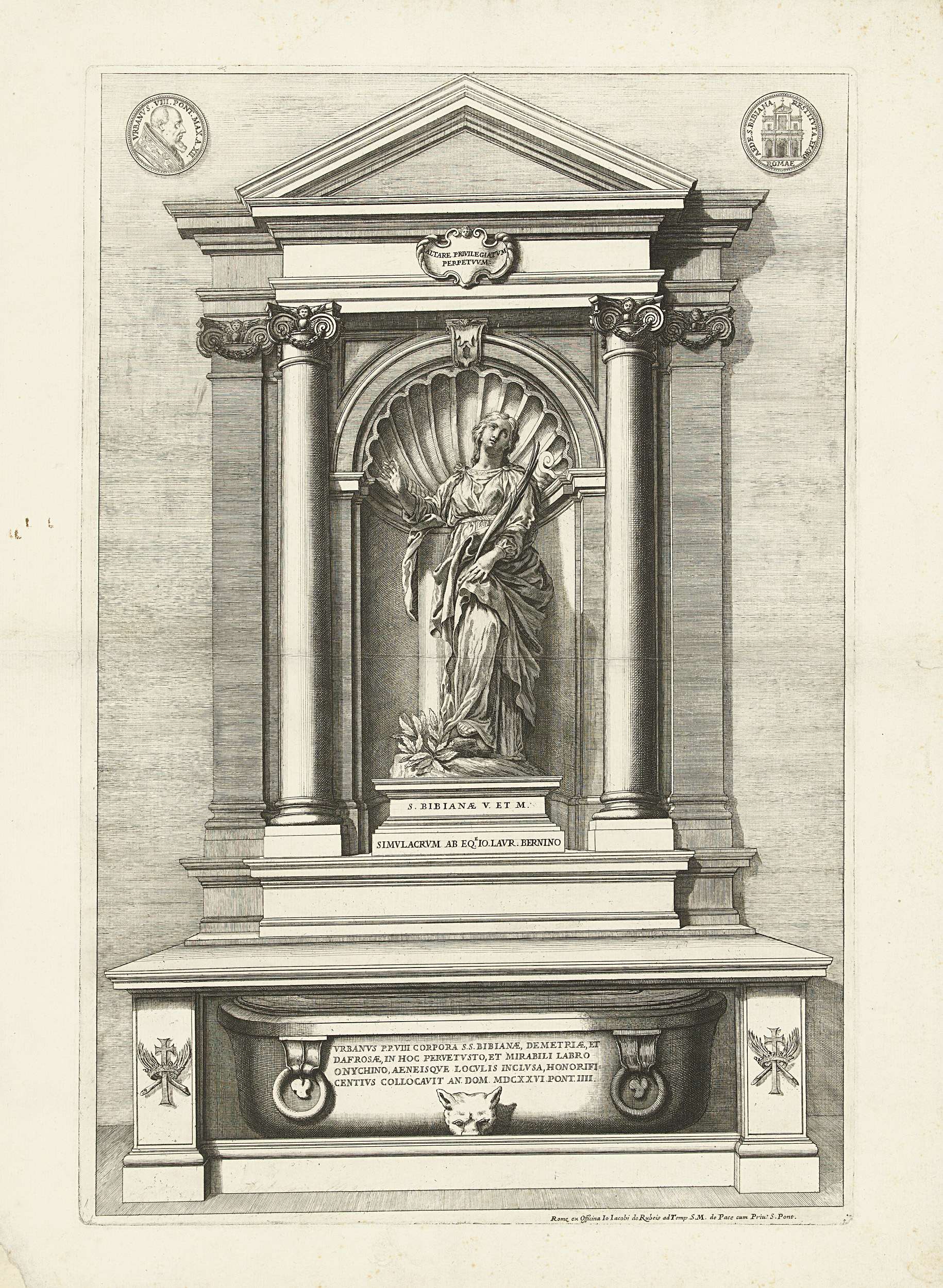 Grafmonument voor de heilige Bibiana in de aan haar gewijde kerk in Rome. Het beeld van de heilige staat op haar graftombe. Aan weerszijden van het beeld staan zuilen die een timpaan dragen. Bibiana is met een palmtak en met een zuil afgebeeld.