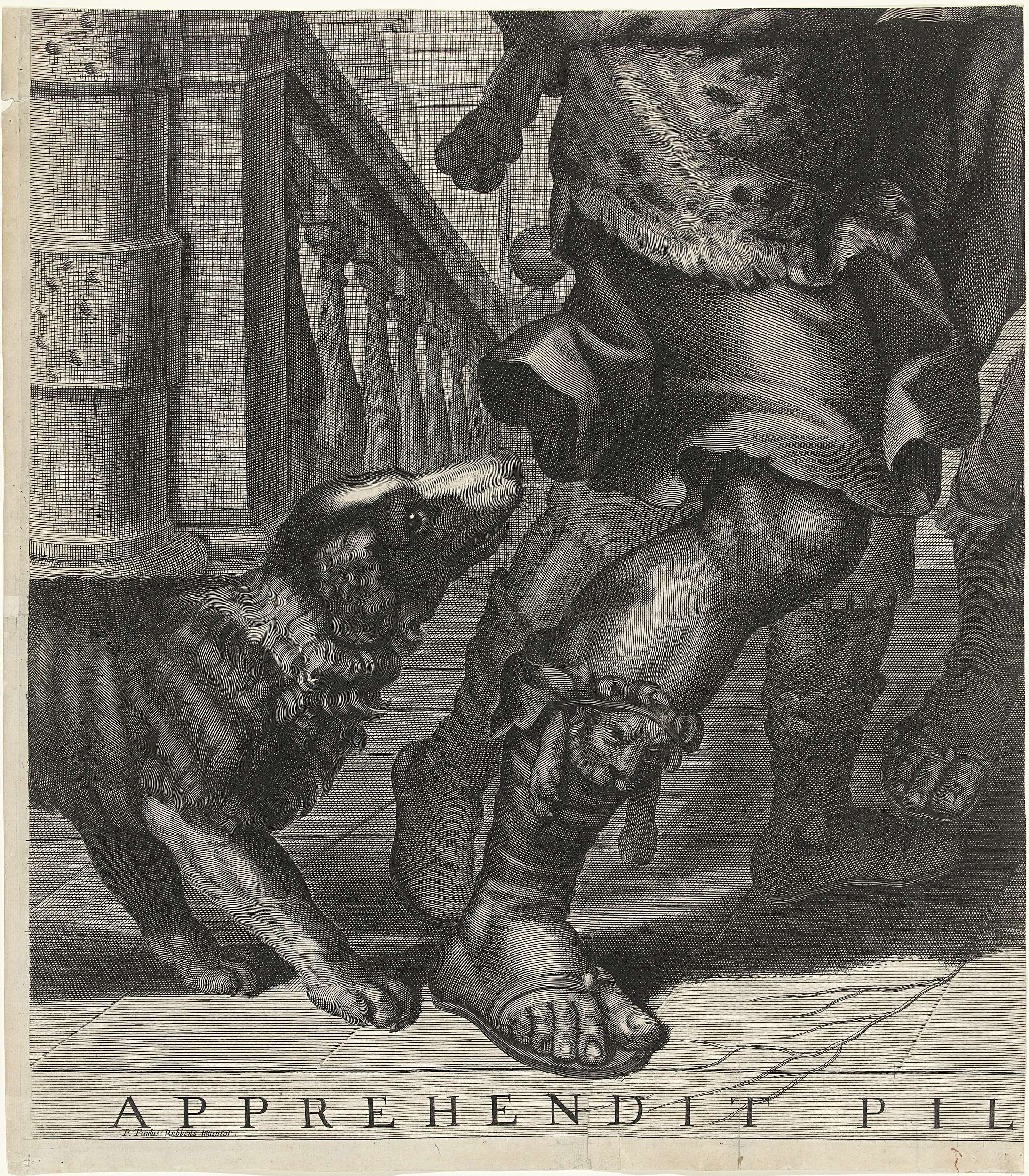 In het midden van de prent staat Christus. Hij wordt door twee mannen gegeseld. Een man heeft een roede vast, de ander een zweep met knopen. Twee andere mannen houden Christus in bedwang. Rechts van de prent kijkt Pilatus toe. Op de achtergrond de Farizeeën en schriftgeleerden, die van op afstand de marteling volgen. De ...