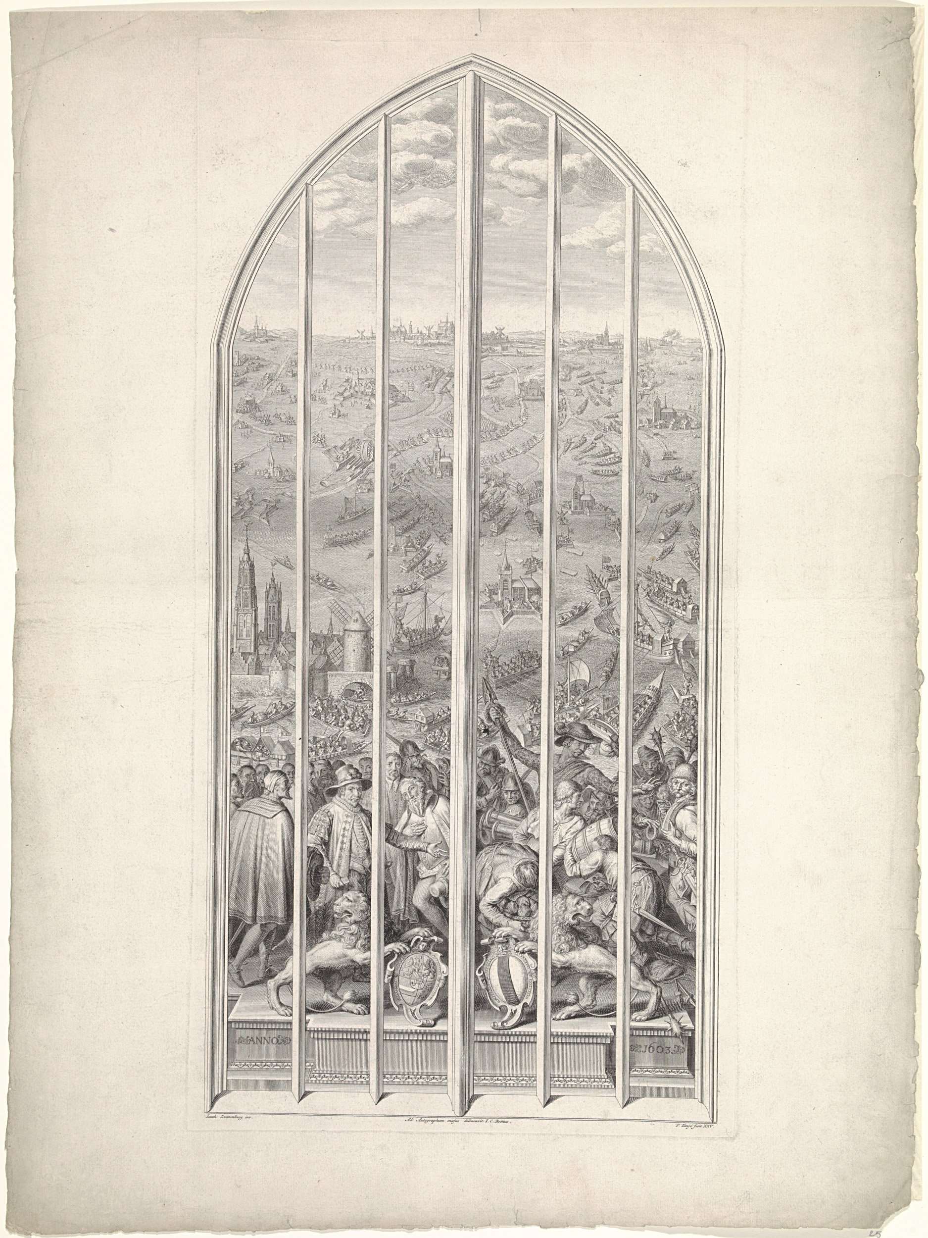 Glasraam 25 in de Sint-Janskerk te Gouda: Het ontzet van Leiden